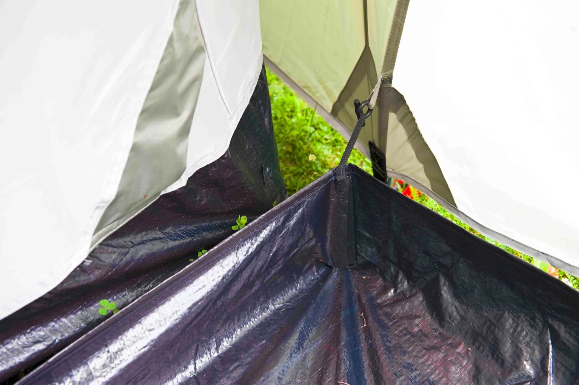 - Außenzeltmaterial: 100% Polyester 185 T, feuerhemmend, Nähte getaped