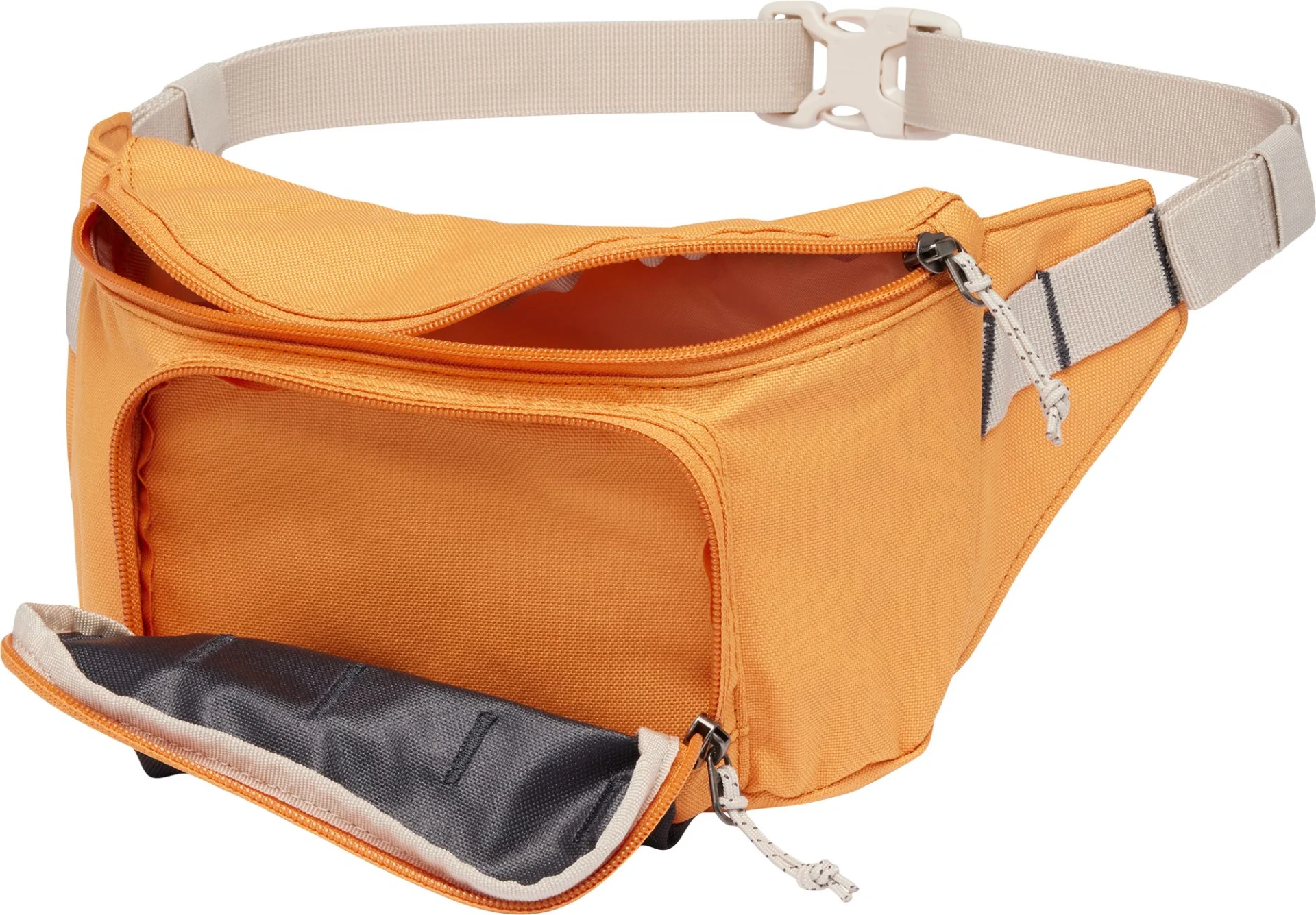 Eine klassische Hüfttasche mit verstellbarem Gürtel und Reißverschlusstasche sowie einer Zubehörtasche mit Reißverschluss.