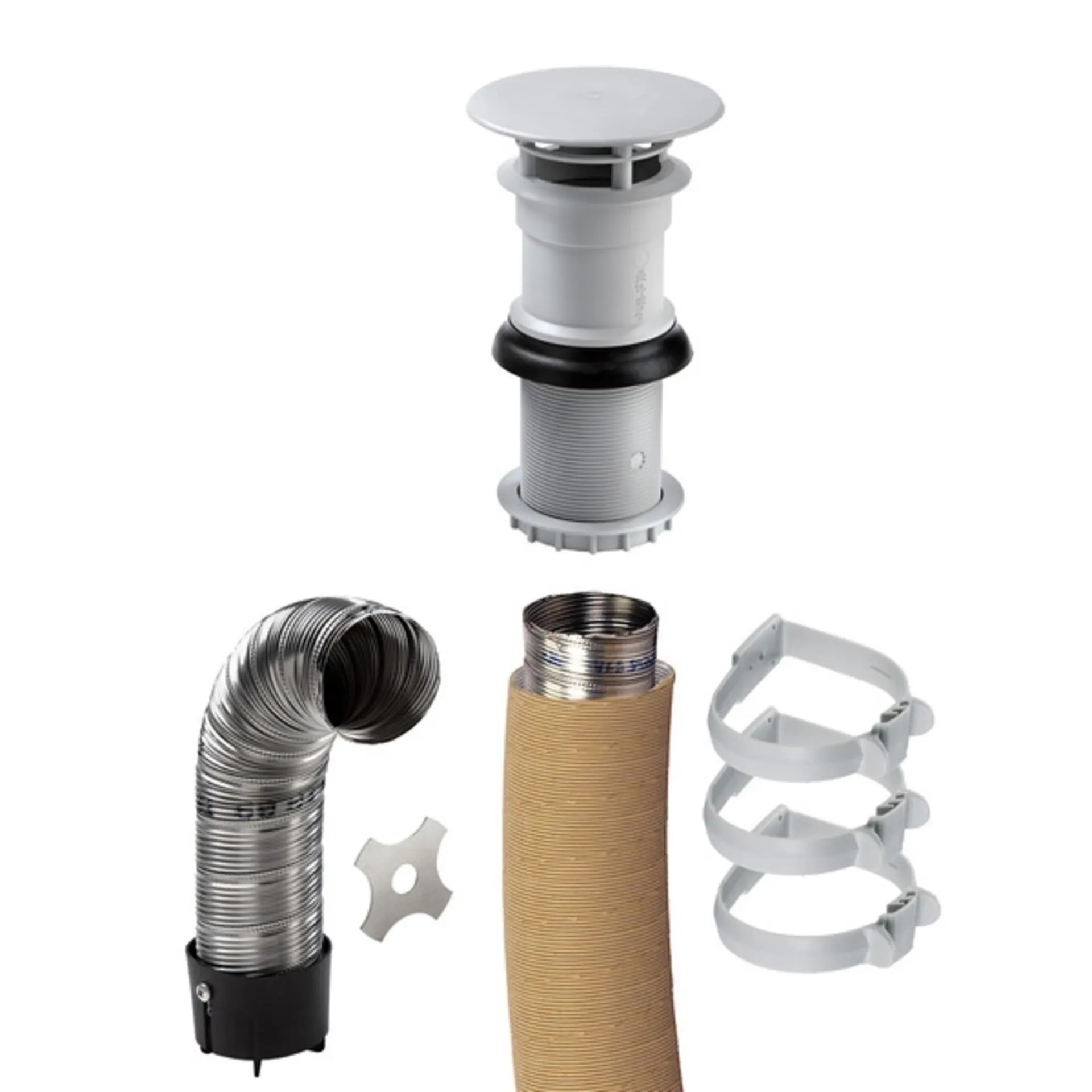 Dachkaminset mit Kamin, Abgasrohr, Überrohr, Schellen und Ansaugstutzen