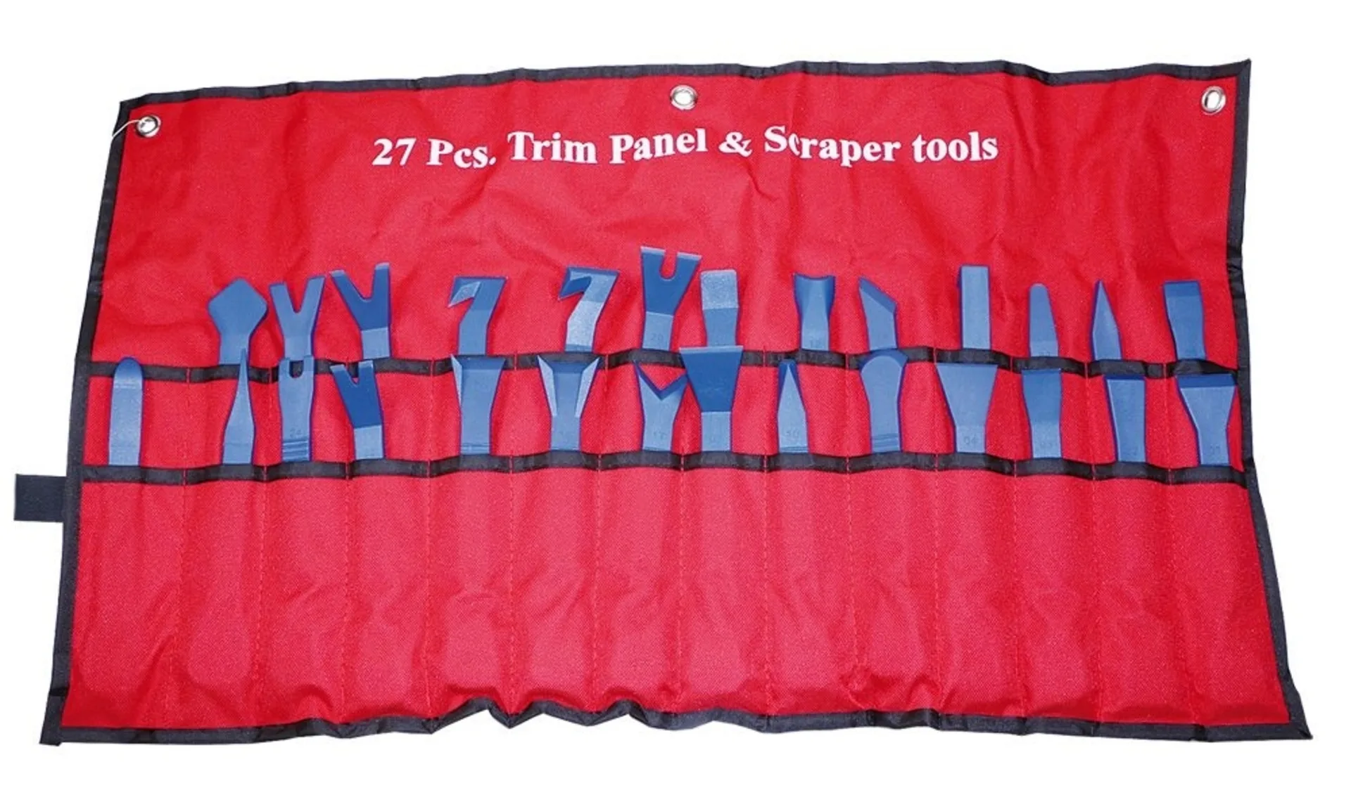 27-teiliges Werkzeug-Set zur fachmännischen Demontage von Tür- und anderen Verkleidungen mit Clip-Befestigung. Minimiert die Verletzungs-Gefahr von Mensch und Material. Werkzeuge aus zähem Kunststoff.