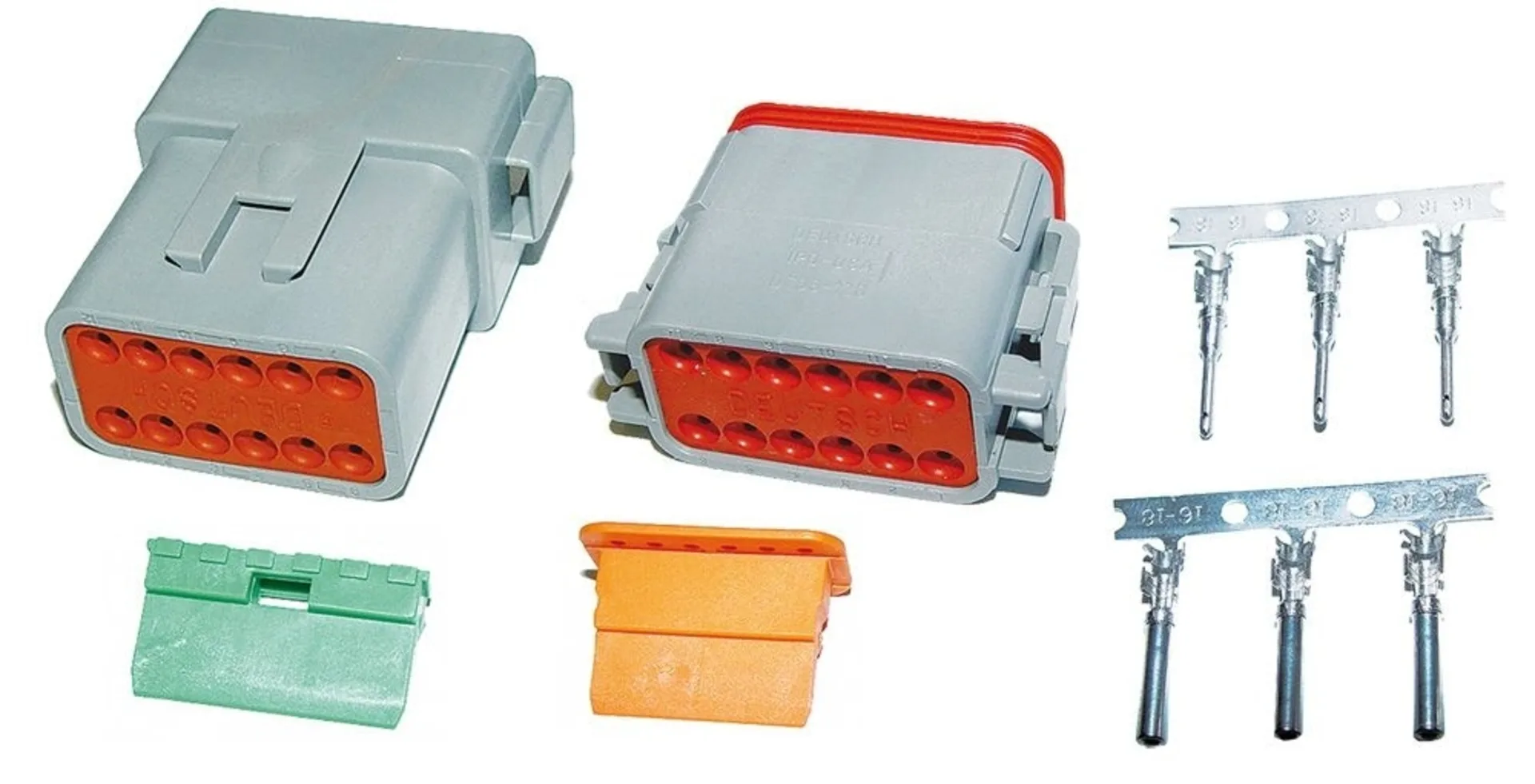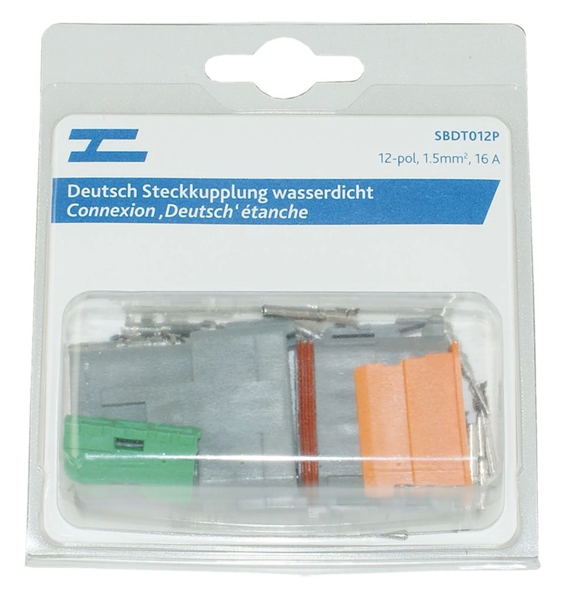 Satz Stecker und Buchse mit Kontaktpins und Haltekeilen, 12polig - 1.5mm2 - 13 Amp.