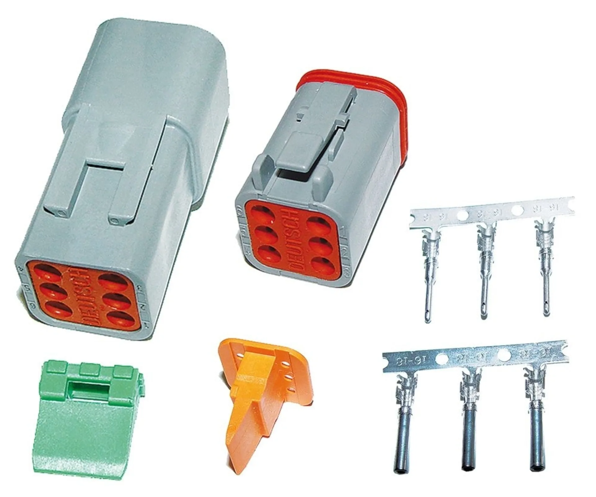 Satz Stecker und Buchse mit Kontaktpins und Haltekeilen, 6-polig - 1.5mm2 - 13 Amp.
