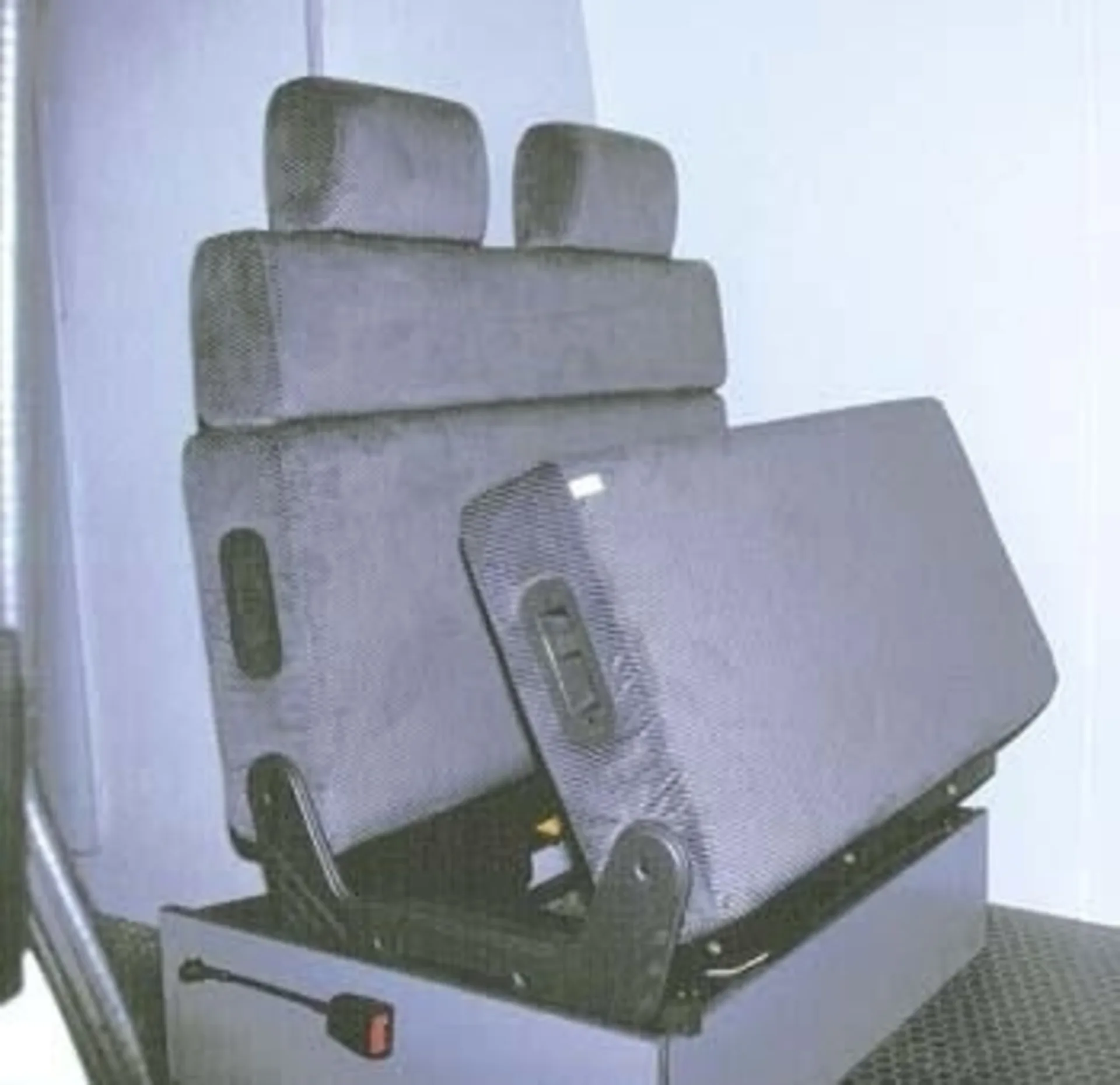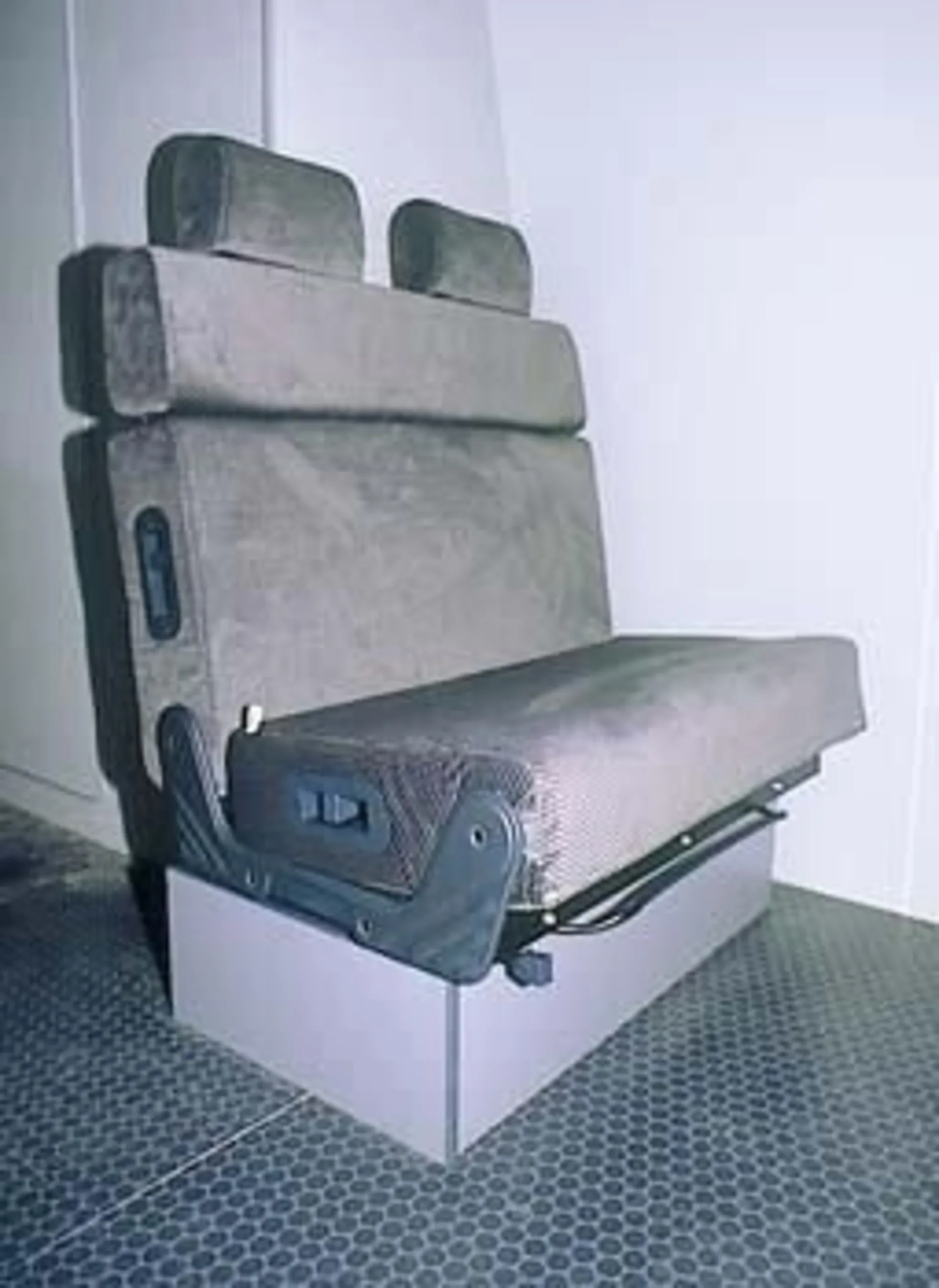 Ausstattung: Hochwertiger Schaumstoff mit grosser Dichte. Hochwertiger Polsterbezugsstoff. Stabiles Stahlrohrgestell. Zusatzstauraum unter dem Sitz. Der Einbau kann auf einer Bodenplatte oder direkt auf dem Fahrzeugboden (mot oder ohne Gummimatte) erfolgen.