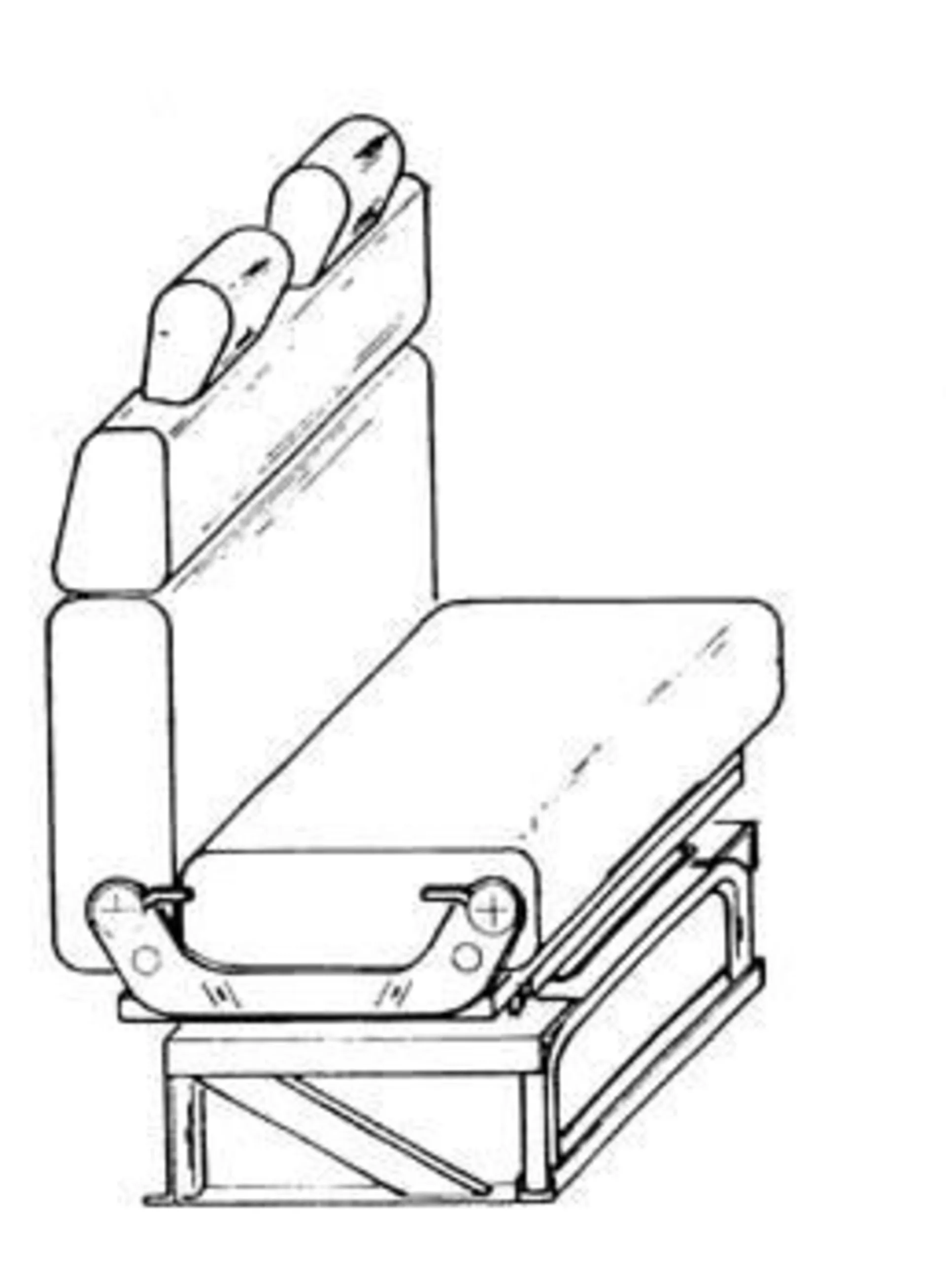 Technik-Info: Die Divan Bank 502 ist ohne ohne Sicherheitsgurte und für die vordere Position entgegen der Fahrtrichtung vorgesehen.
