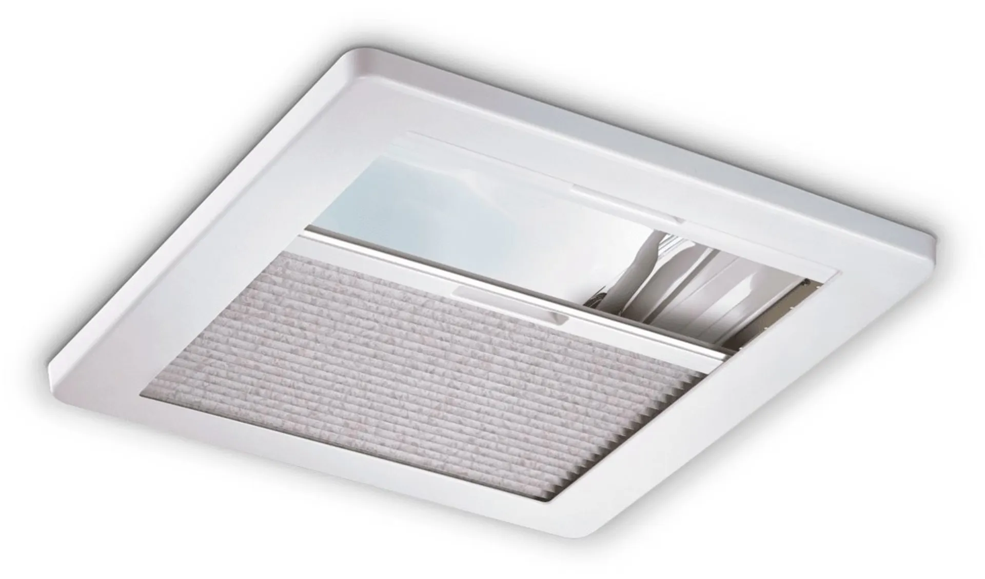 Die Mini Hekis sind mit einer einfach plissierten Verdunkelungsblende und einem Fliegengitter ausgestattet.