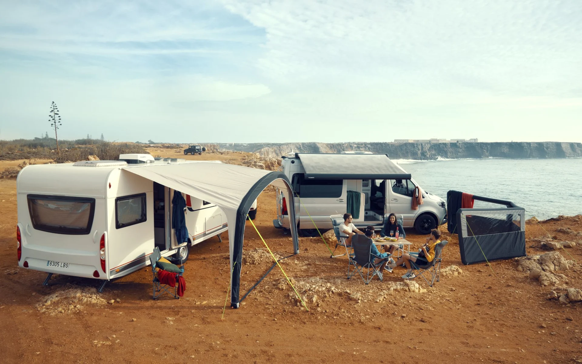 Das innovative Sunshine AIR ersetzt Metallstangen durch einen festen Luftrahmen. Entspannen Sie sich bequem im Schatten der Sommersonne oder bringen Sie einfach optionale Seitenwände an, um ein wenig Privatsphäre und Schutz vor dem Wind bereitzustellen (separat bestellbar).