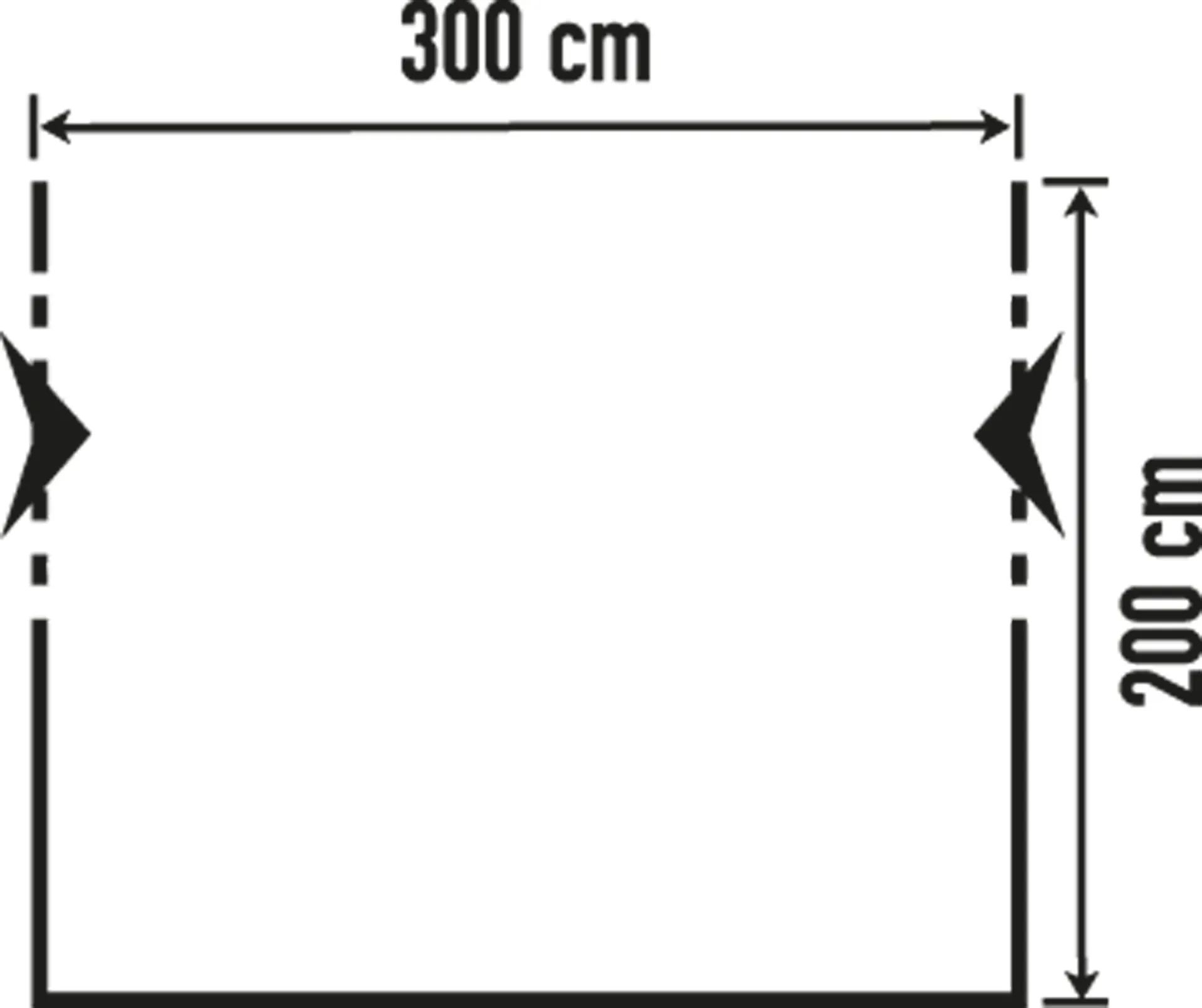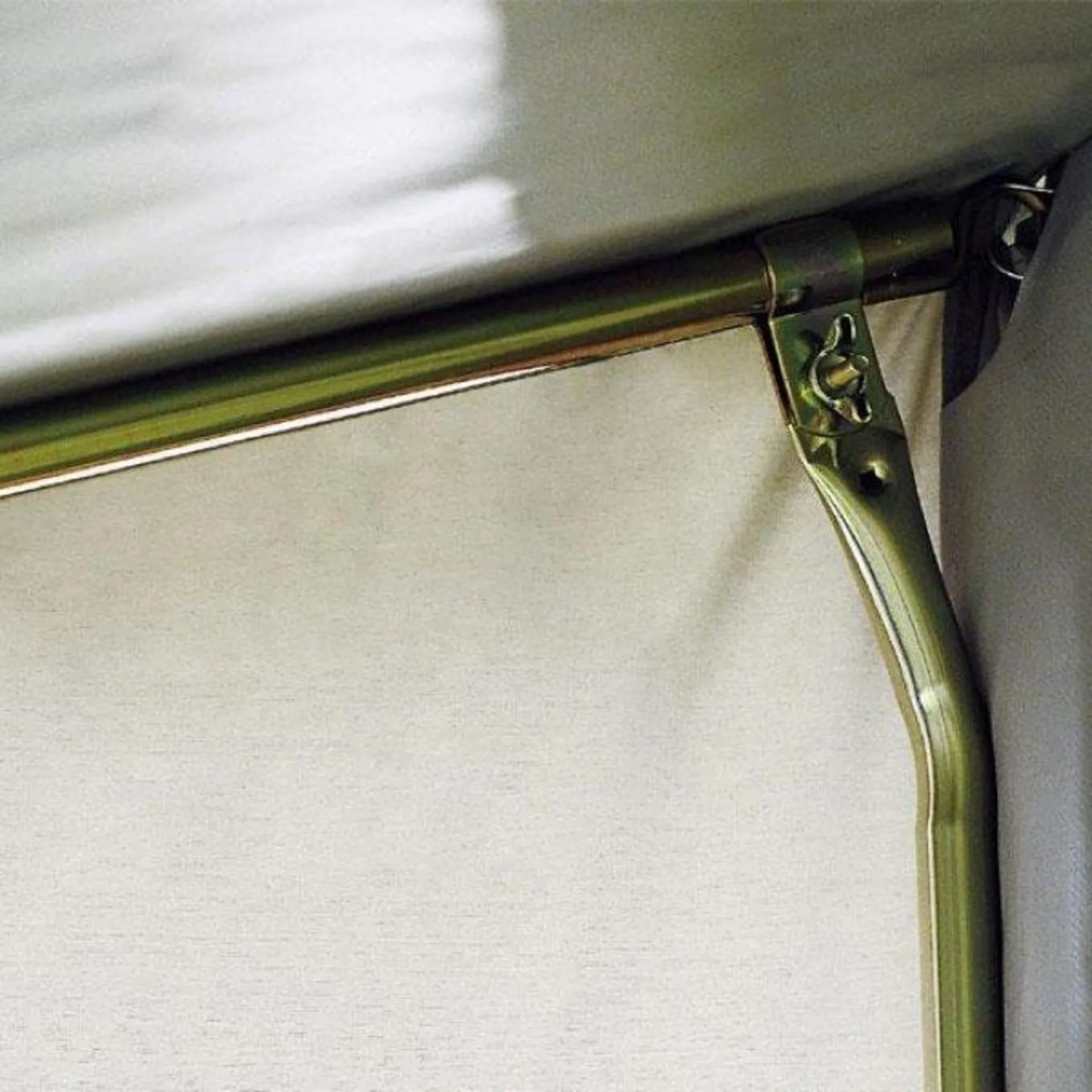 | Gestänge | Stahlgestänge Ø 25 mm. Ab Größe 250 x 200 cm mit 3-Bein-Gerüst. |