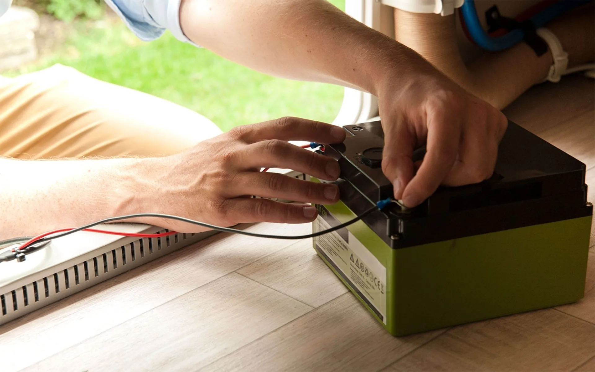 - Schließen Sie einfach die schwarzen und roten Kabel an Ihre Stromversorgung an.