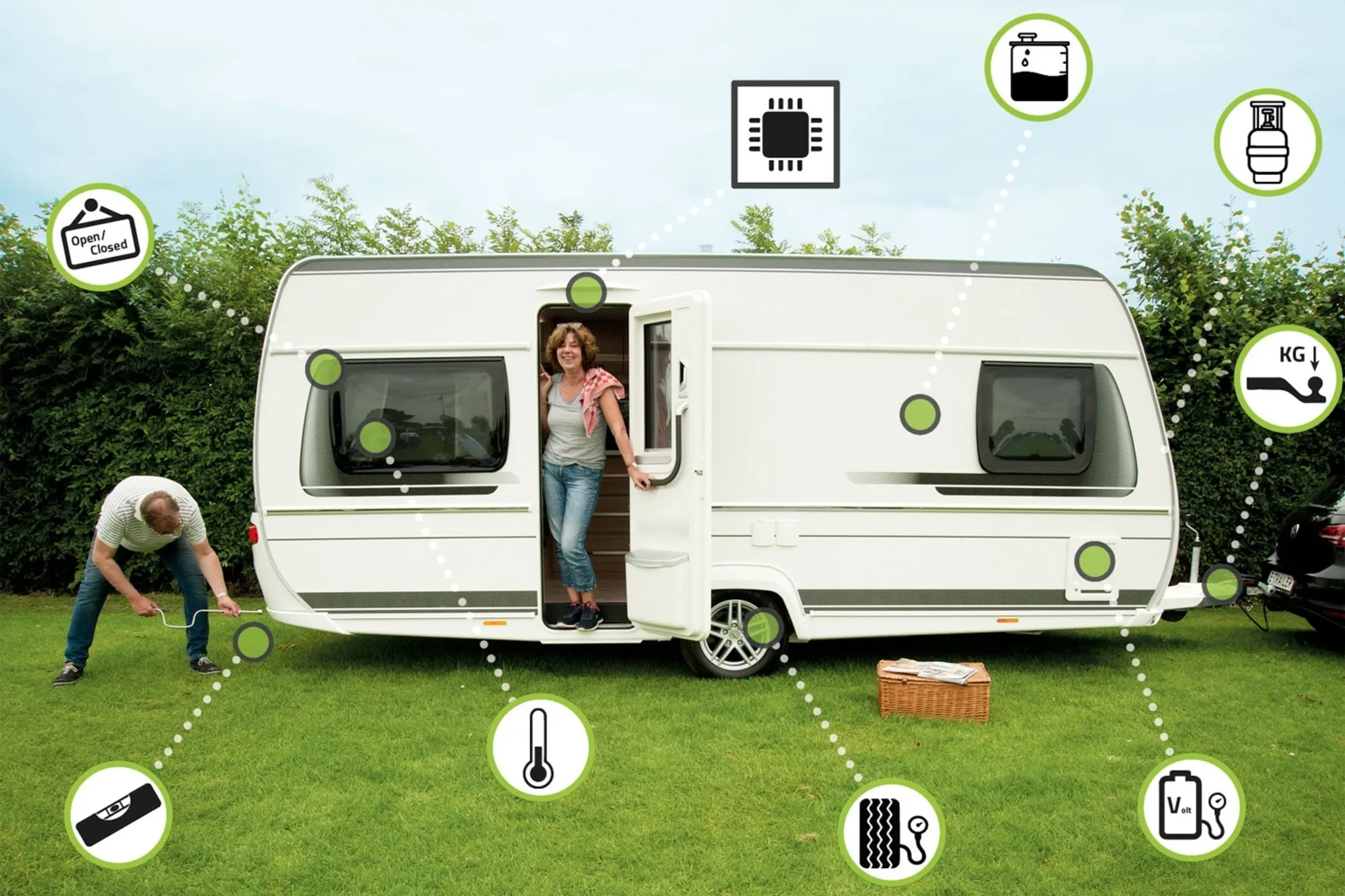 Der E-Connect ist mit einem Bluetooth-Empfänger ausgestattet, sodass Sie – ohne Internetverbindung – eine Verbindung zwischen Ihrem Smartphone und dem Basissystem herstellen können. Sie benötigen den E-Connect, um alle zugehörigen Module nutzen zu können, da er das Herzstück des E-Trailers ist. Natürlich müssen Sie dies nur einmal erwerben und können wählen, welche Erweiterungen zu Ihnen passen. So haben Sie alles über Ihr Smartphone zur Hand. Ihr Campingurlaub war noch nie so entspannt!