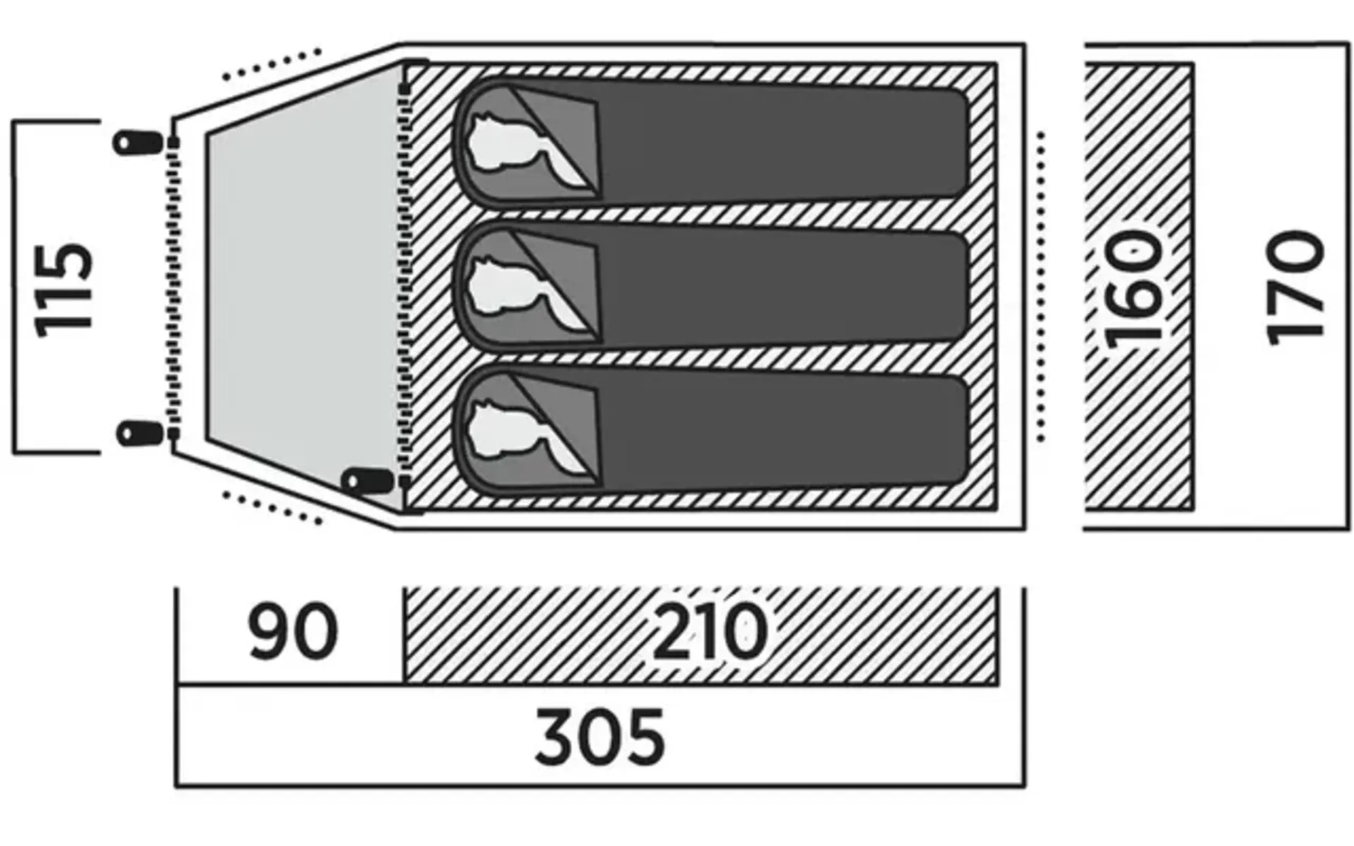 - Materialzusammensetzung: Überzelt: 100 % Polyester, Innenzelt: 100 % Polyester, Mesh-Gewebe: 100 % Polyester