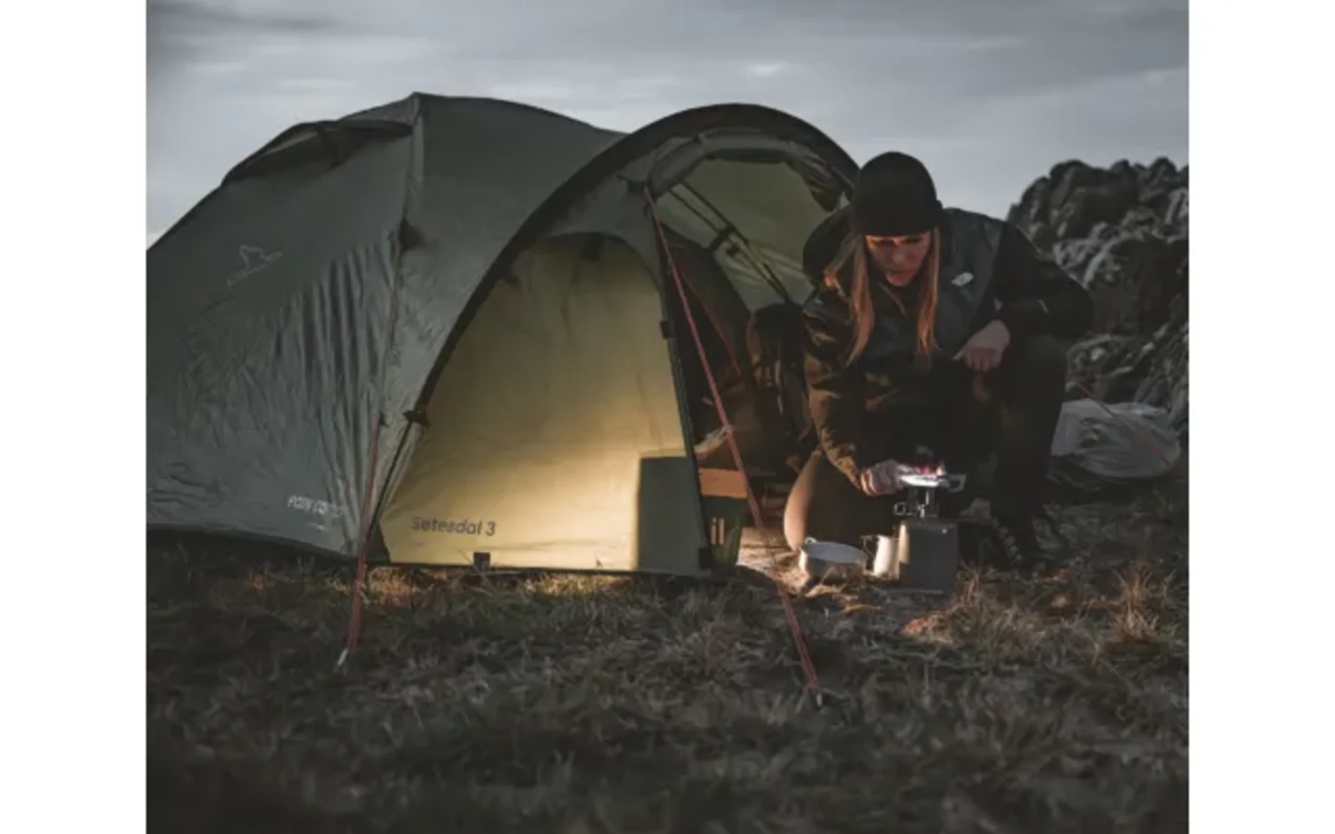 Das Setesdal 3 Zelt bietet funktionalen Komfort für drei Personen. Mit einem geräumigen Vorraum, abgedunkelten Wänden für erholsamen Schlaf und Belüftung vorne und oben sorgt es für eine angenehme Atmosphäre. Der abnehmbare Zeltboden im Vorraum bietet flexible Aufbewahrung und Schutz.