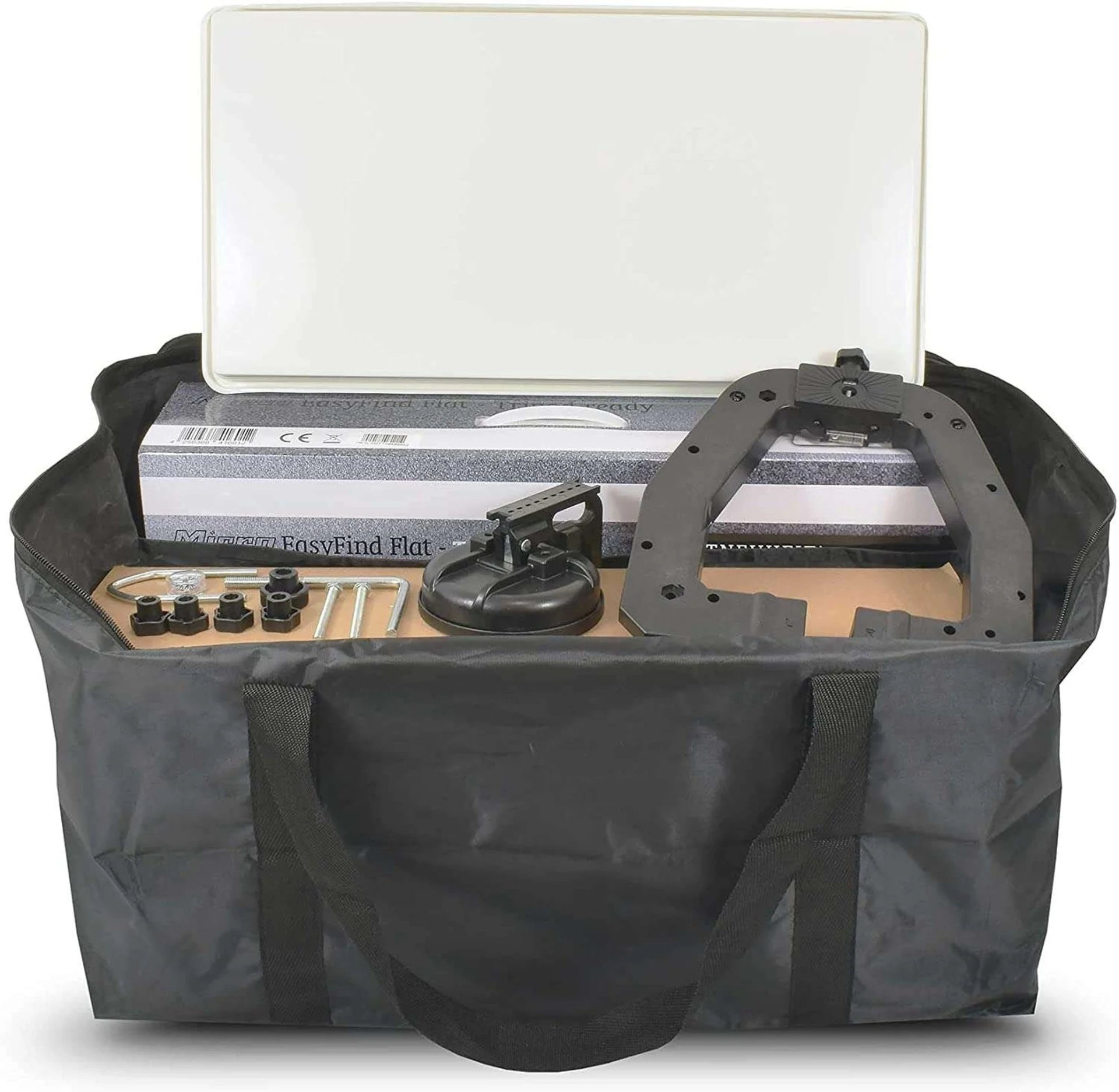 Egal ob zu Hause oder unterwegs passt sich die Antenne ideal ihrer Umgebung an und bietet durch ihre kompakte Bauweise höchsten Komfort. Die EasyFind Flat II Antenne lässt sich schnell und einfach auf- und abbauen. Die Anlage wird inkl. Multifunktionshalterung und einer Tragetasche geliefert.