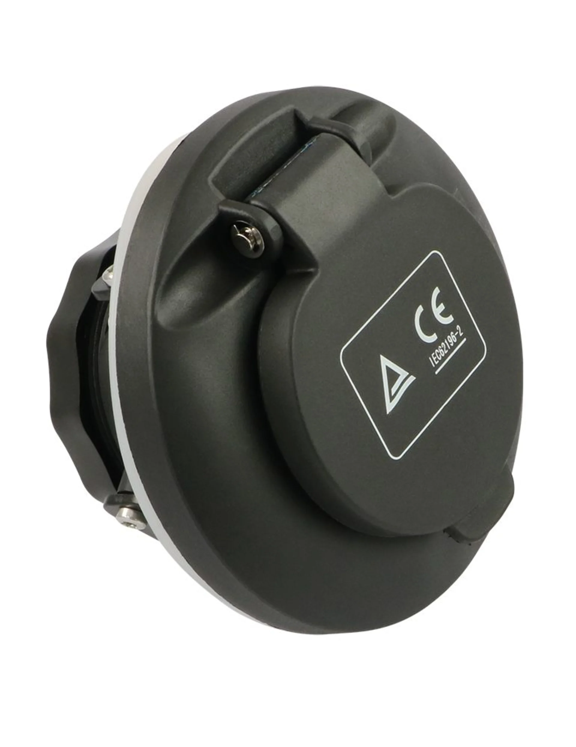 Einbau-Ladesteckdose Typ 2 / 32 A 240/415 VAC Stationsseite, mit Feder-Klappe und Dichtung, ohne mechanische Entriegelung , Montage mittels 3 Schrauben,