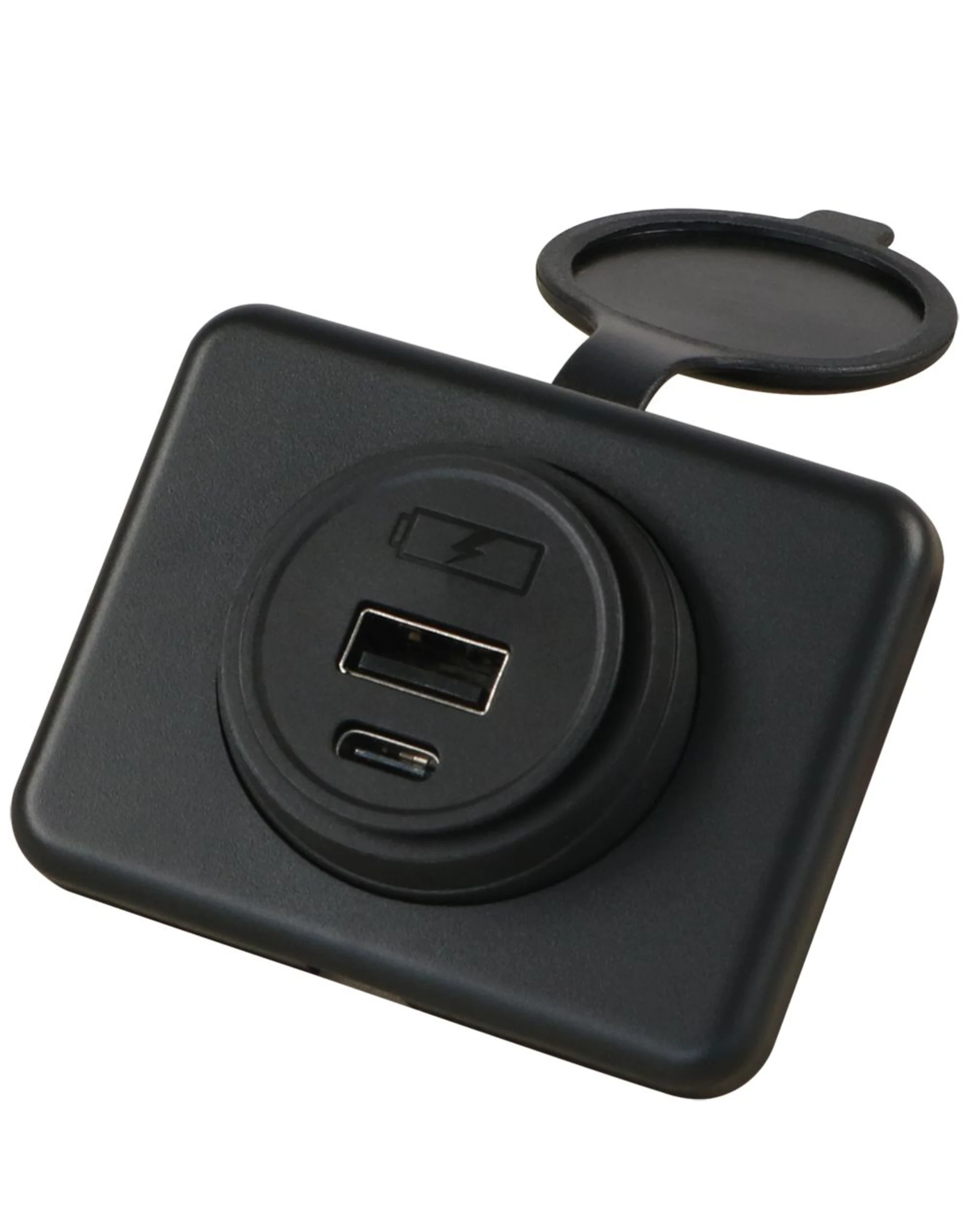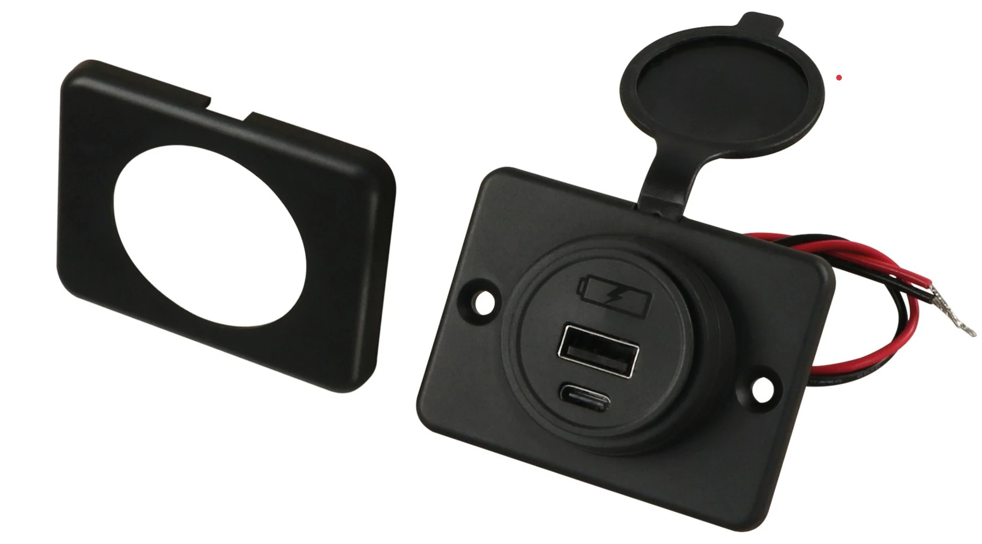 Flache USB Ladedose, benötigt nur 1 Loch für die Kabelführung.