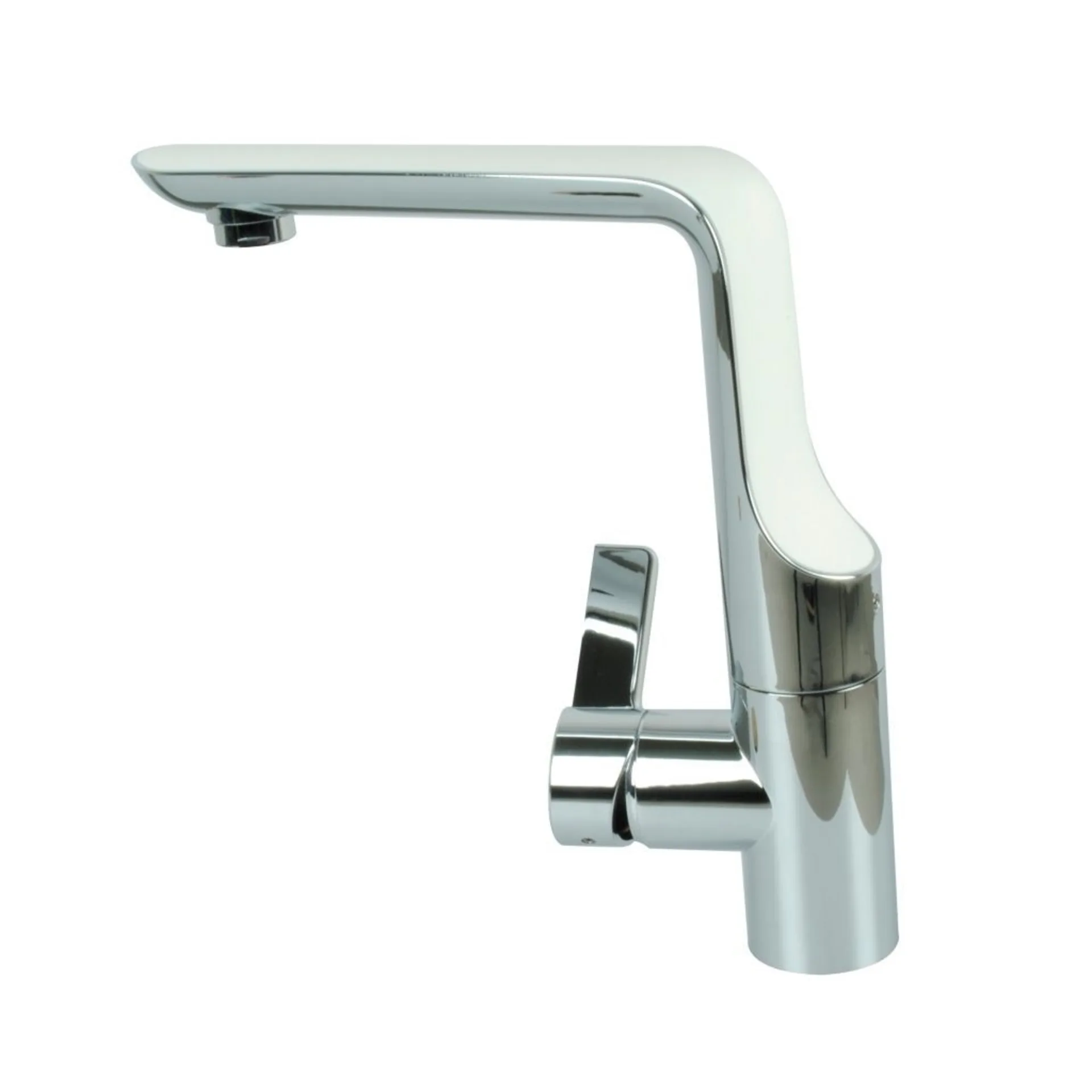 Moderne Kunststoffarmatur. Die hohe Funktionalität unterstreichen der schwenkbare Auslauf (360°), die eingesetzte, bewährte Keramikkartusche, sowie der ausschraubbare Wasserauslass. Standardmässig mit Reinigungsschlüssel zum Entkalken und Reinigen. Gut zu reinigende Oberfläche.