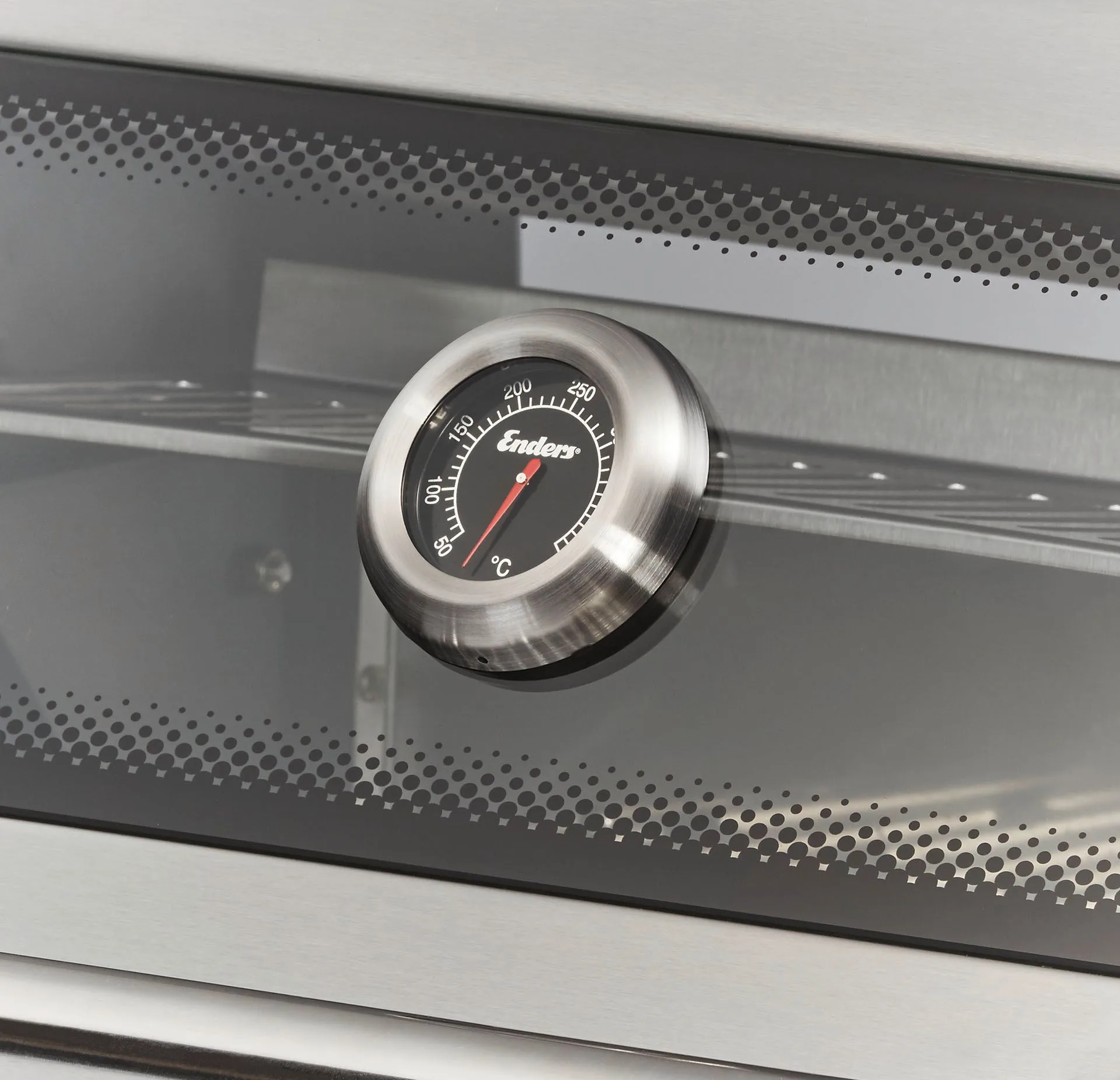 - großvolumige Garhaube aus Edelstahl mit integriertem Thermometer