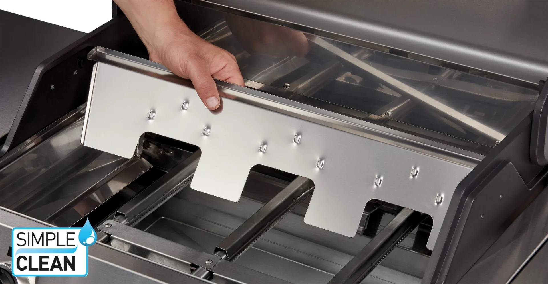 - Flammenabdeckungen aus Edelstahl schützen die Brenner und optimieren die Hitzeverteilung