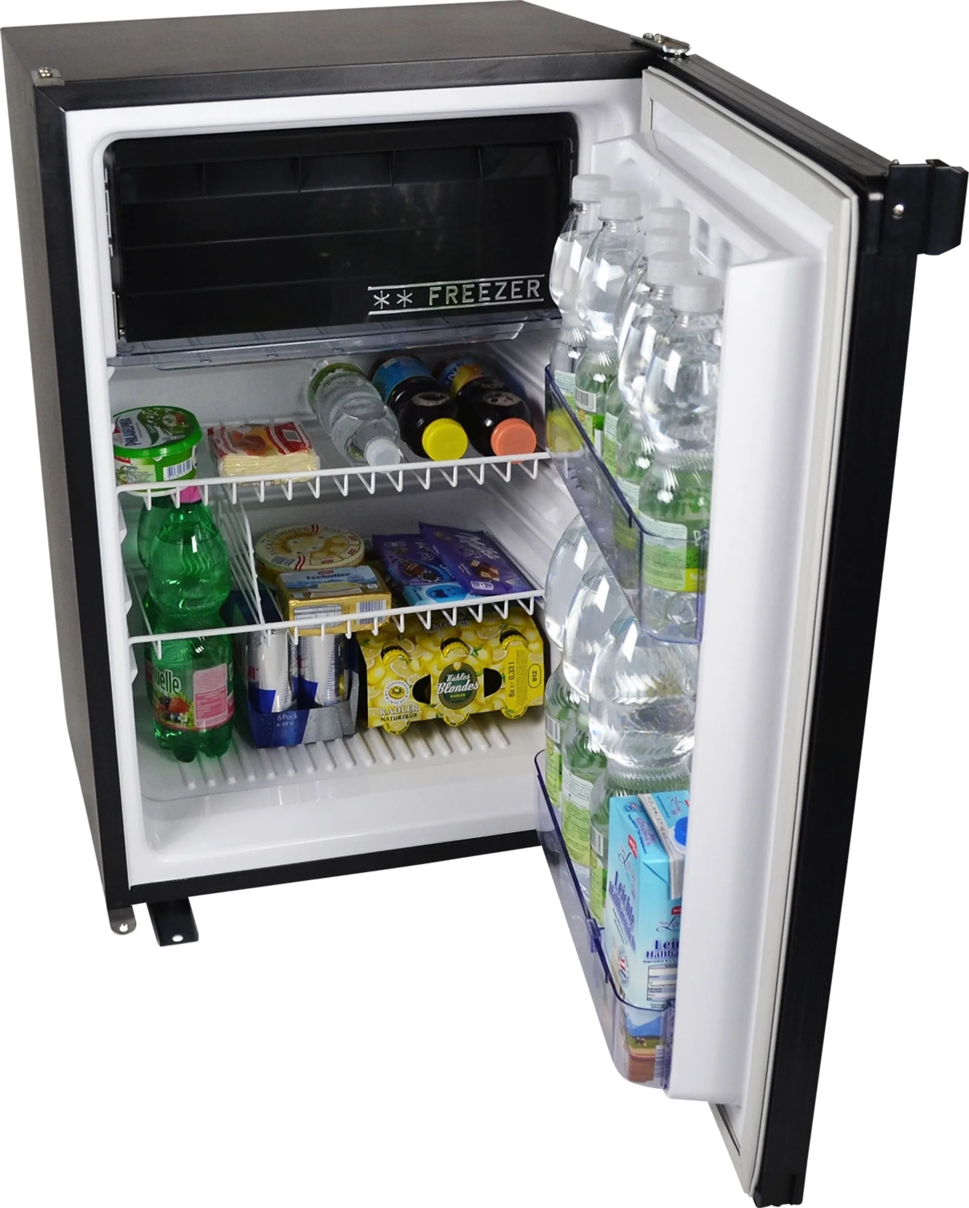 Freistehend oder Einbau – ideal für die Berufsschifffahrt, große Reisemobile, Yachten oder einfach nur für das Ferienhaus. Wer genug Platz zur Verfügung hat, kann seinen Kühlschrank schnell, einfach und gut zugänglich montieren. Mit dem optionalen Einbaurahmen als Zubehör kann dieser Kühlschrank auch als Einbaugerät verwendet werden.