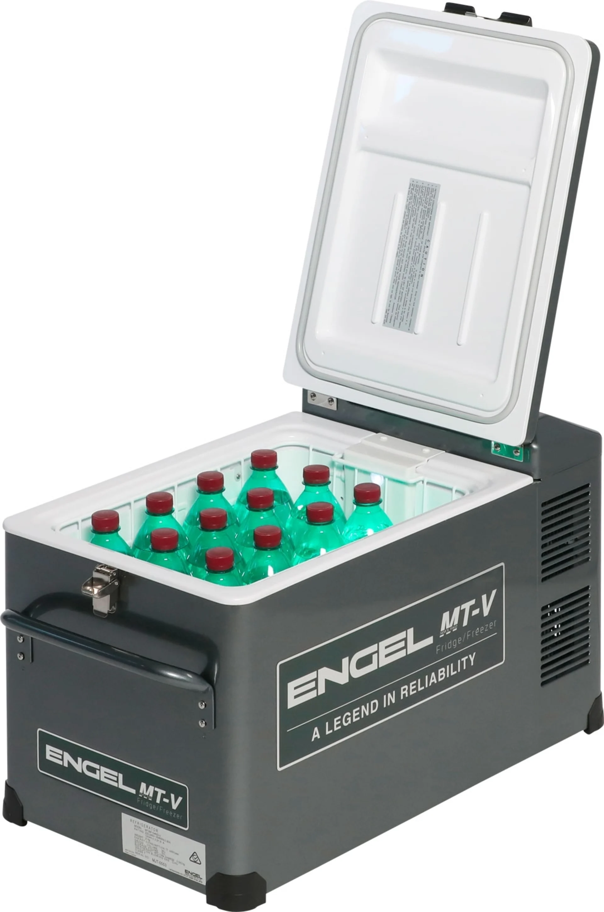 Die neue V-Serie von ENGEL bietet noch mehr Ausstattung und ein edles Design. Diese neuen Kühlboxen sind speziell für den mobilen Einsatz entwickelt worden. Der wartungsfreie Schwingkompressor arbeitet leise und effizient. Ein digitales Display zeigt jederzeit die aktuelle Innentemperatur.