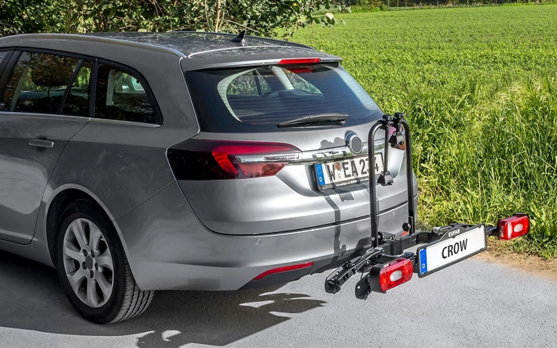 Auf dem Fahrradträger CROW können Sie bis zu zwei Fahrräder auf der Anhängerkupplung transportieren. Sie können damit auch Fahrräder mit Oversize und Y-Rahmen mit einem Durchschnitt bis zu 8,5 cm. Mit der Klappfunktion ist der Träger bereits in 5 Schritten einsatzbereit. Im Vergleich zum Transport auf dem Dach, haben Sie einen geringeren Kraftstoffverbrauch.