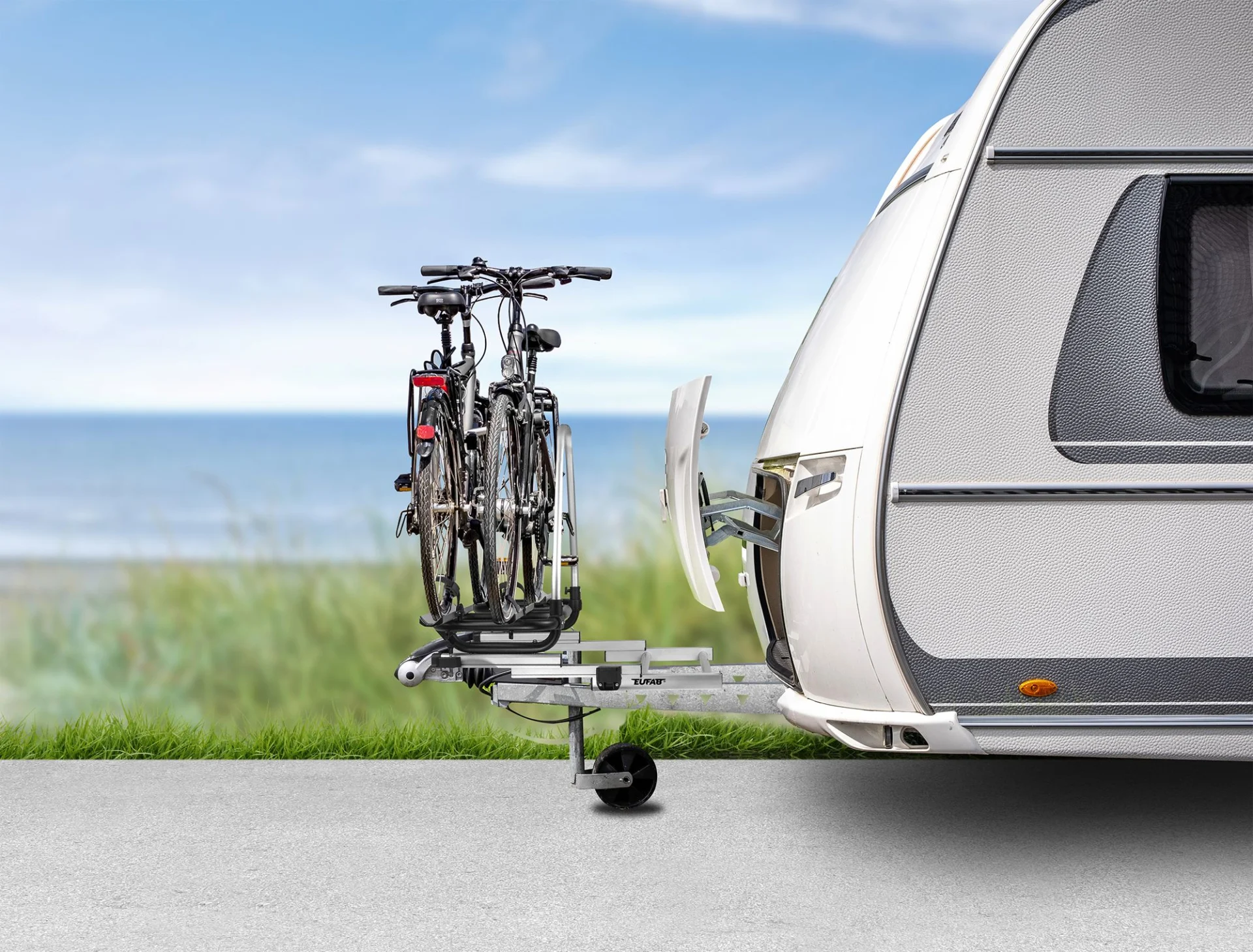 Der Deichsel-Fahrradträger BS260 ermöglicht den sicheren Transport von Fahrrädern, auch E-Bikes, während Ihrer Reisen mit dem Wohnwagen. Dank seines leichten und robusten Designs lässt er sich einfach montieren, ohne Bohren in die Deichsel. Ein praktisches Schiebesystem sorgt dafür, dass der Staukasten des Wohnwagens trotz montiertem Träger zugänglich bleibt.