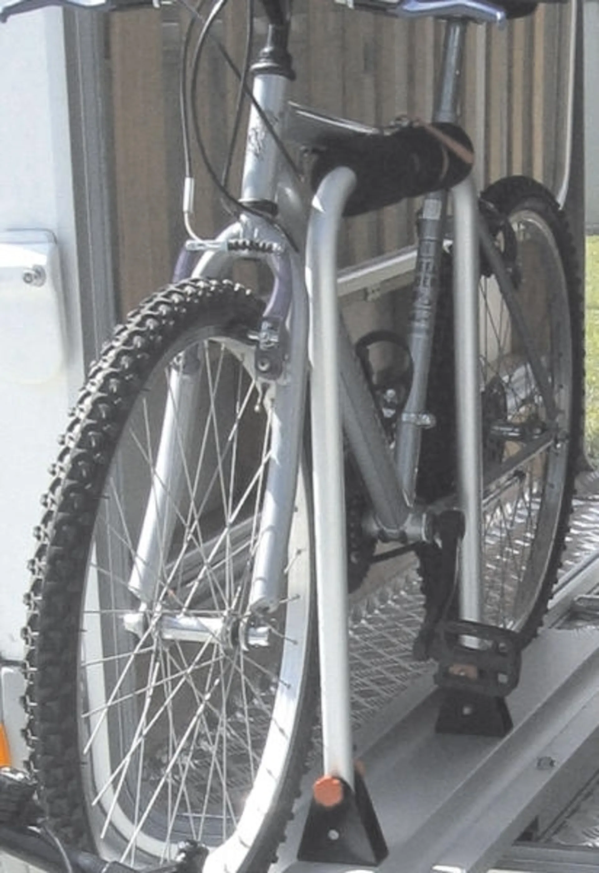 Fahrrad-Haltebügel als Zubehör für Heckgaragenschiene Garage Slide. So bringen Sie ihre Fahrräder sicher und bequem unter. Stellen Sie die Räder einfach auf den Auszug der Garage Slide, schieben Sie das Ganze in Ihre Heckgarage und fixieren die Fahrräder - Fertig.
