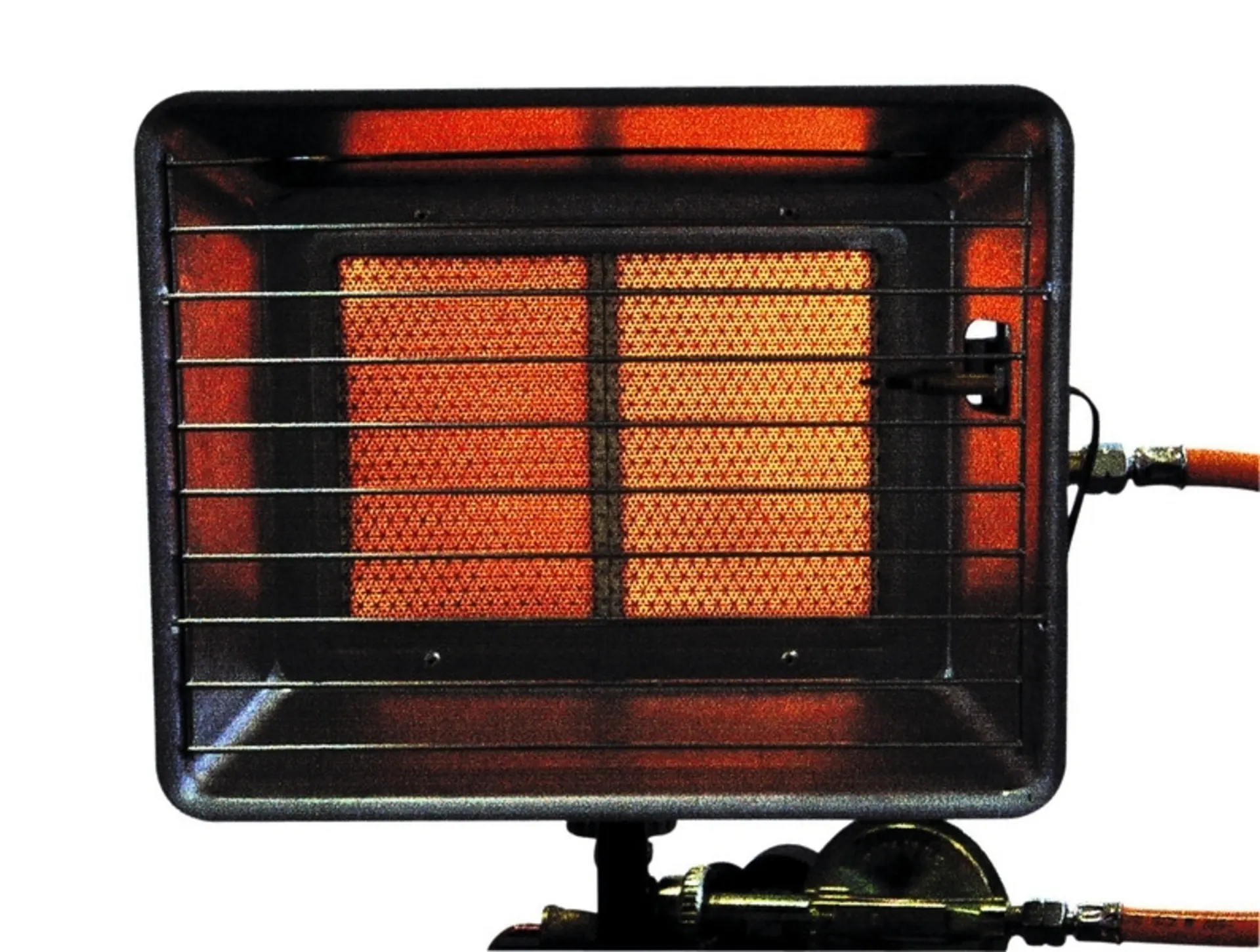 Infrarot mit Zündsicherung, Hohe Leistung. Mit Gasschlauch. Modell 501 zum Aufsetzen auf Gasflasche.