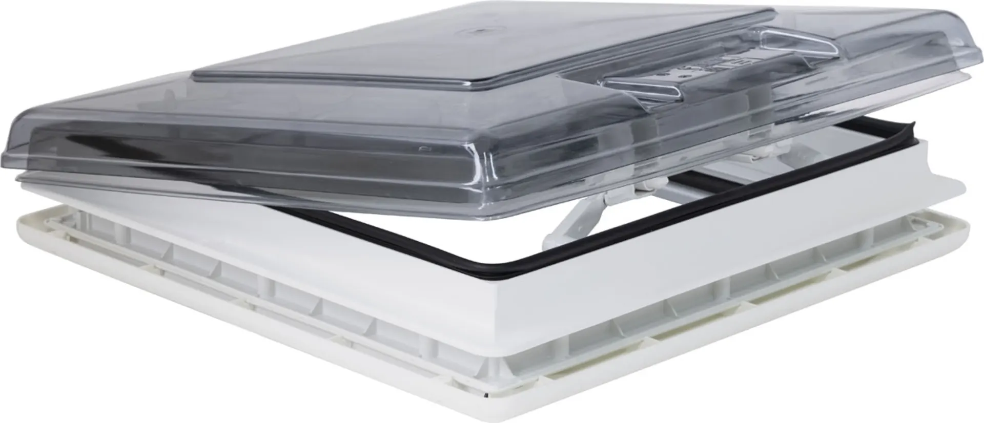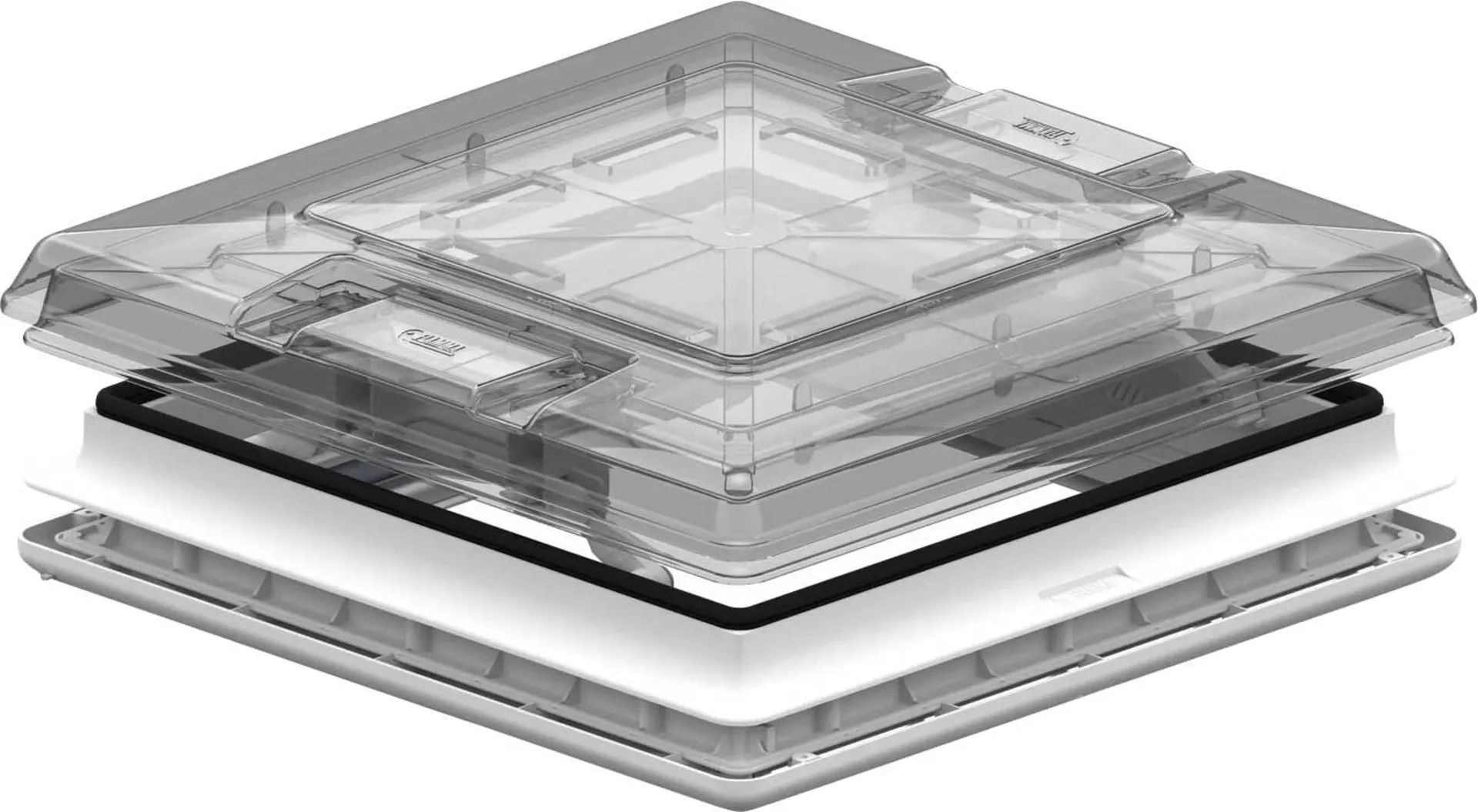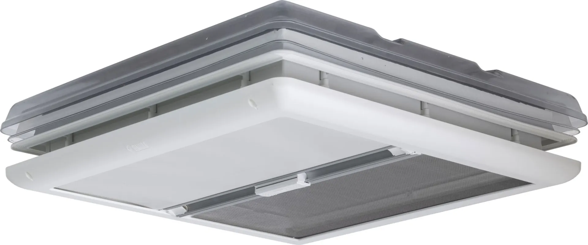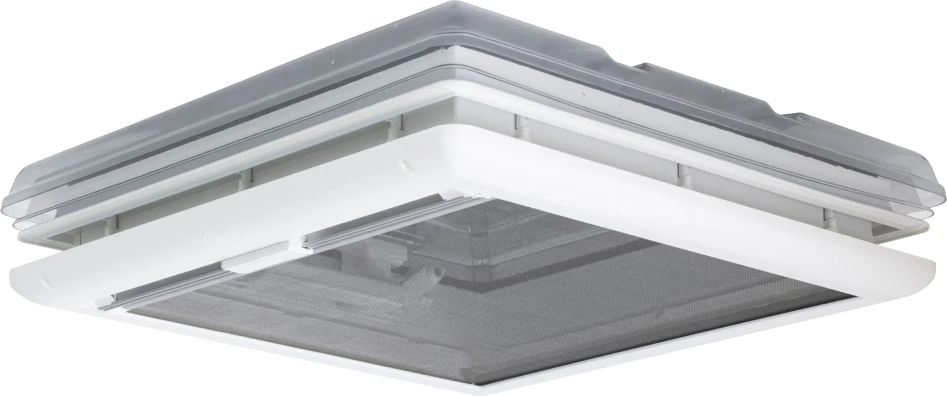 Die aufstellbare Vent 50 Dachhaube von Fiamma inklusive Verdunkelungsrollo und Moskitonetz, welche sich von allen Seiten mit den bequemen Griffen öffnen lässt. Die Größe dieser Dachhaube beträgt 50 x 50 cm. Die Aussenschicht der Vedunklung ist mit hitzeabweisenden Aluminium beschichtet. Aufgrund der Dauerbelüftung ist eine stetige Wind- und Regenbeständigkeit garantiert.