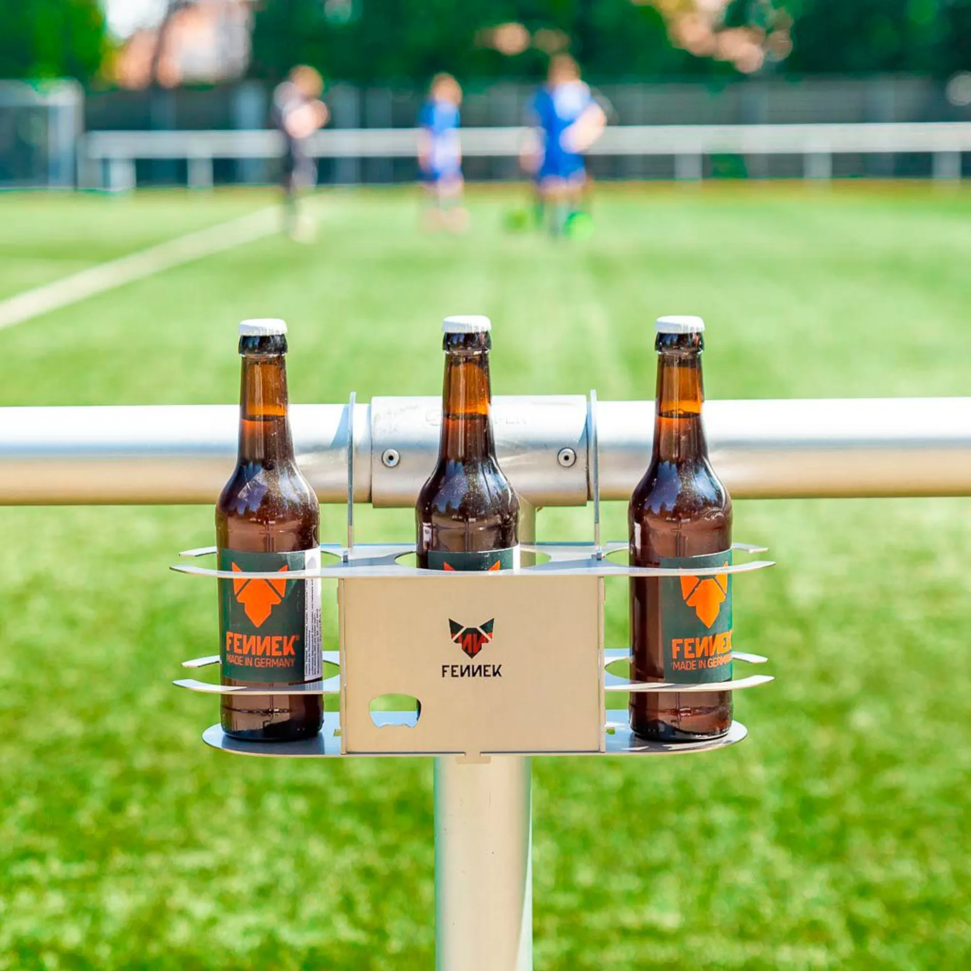 Mit dem integrierten Flaschenöffner öffnest du Flaschen immer ganz frisch und hast eine Sorge weniger.Die verschiedensten Flaschen, Dosen, Gläser und sogar Tassen in unterschiedlichen Größen und Formen können in die Halterung gestellt werden. Perfekt also für den Fußballplatz oder den Tennis-Court.
