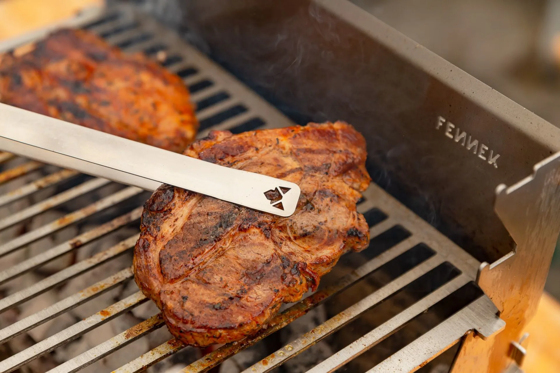 Richtig zupacken, kannst du mit der großen Fennek Grillzange! Perfekt zum Drehen und Wenden. Besonders griffig durch lasergeschnittene Zacken. Extra lange Ausführung, für sicheren Abstand zu Hitze und Flamme.