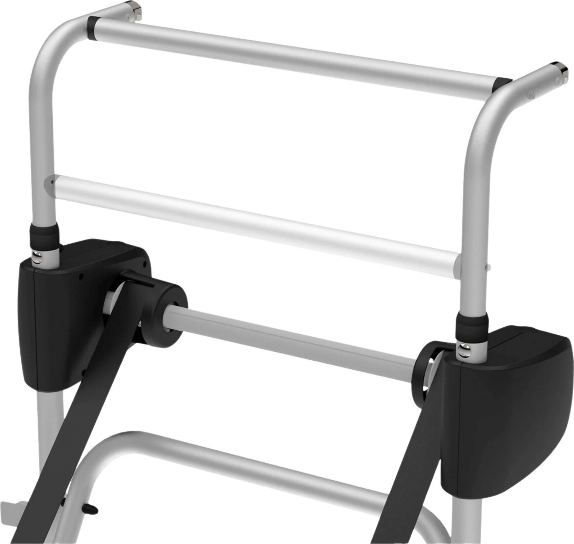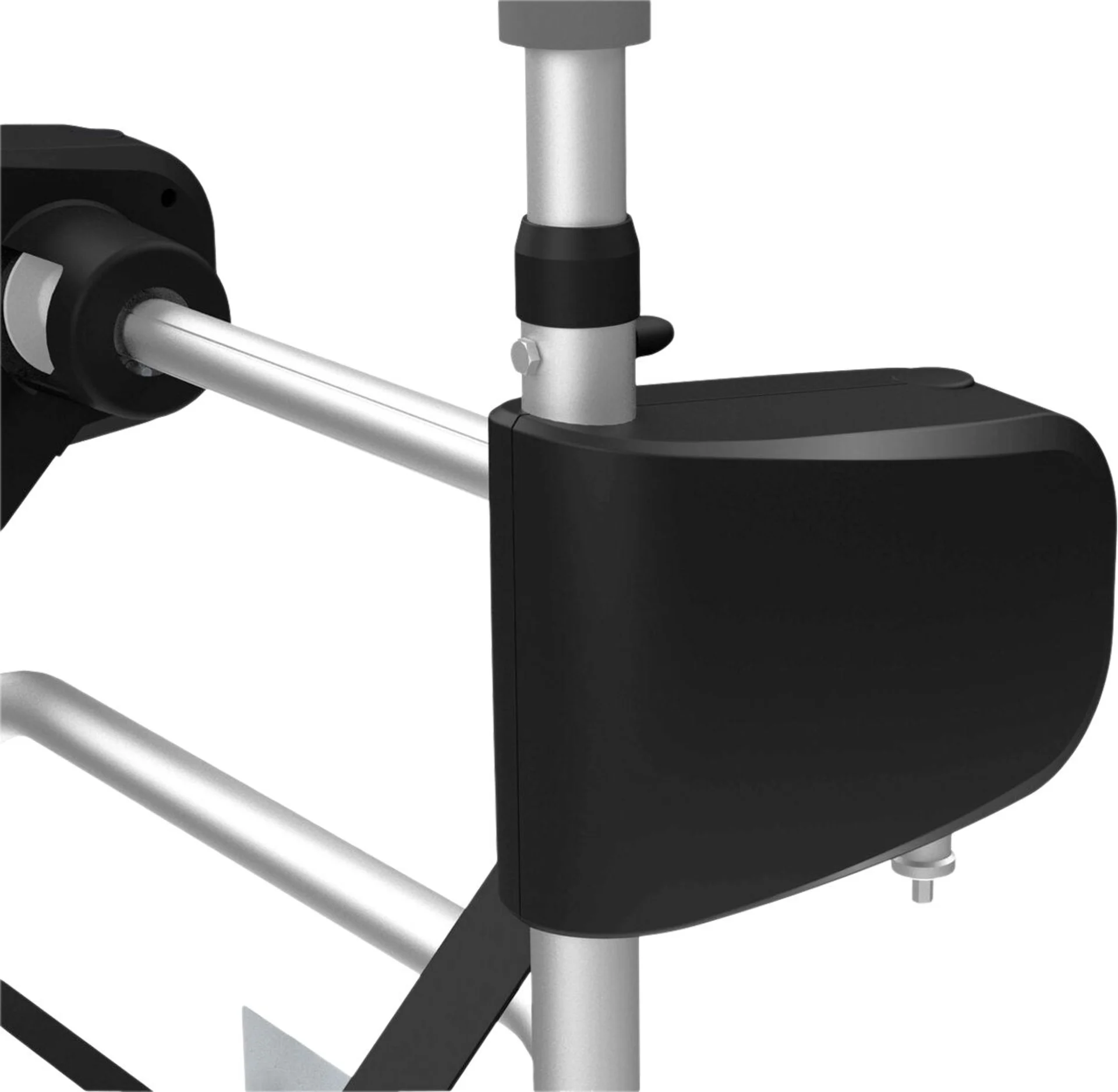• Schwingender Aufl agebügel, der sich dank der Bewegungsstange mit magnetischer Befestigung um 77 cm absenkt. Die Stange kann verkürzt werden
