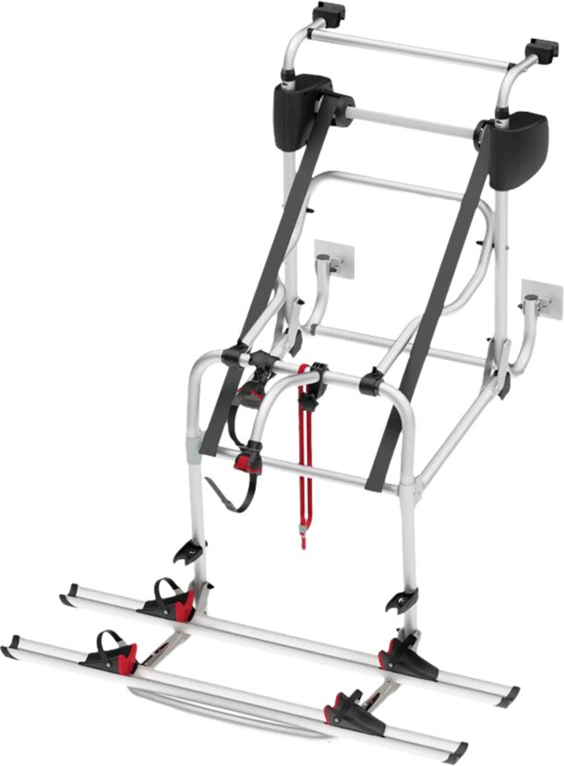 Das wohl praktischste Modell: Der Auflagebügel kann um bis zu 77 cm abgesenkt werden und gewährleistet so ein sehr leichtes Auf- und Abladen der Fahrräder. In 2 Versionen, motorisiert und manuell, mit den bis zu 77 cm absenkbaren Fahrradschienen für müheloses Be- und Entladen