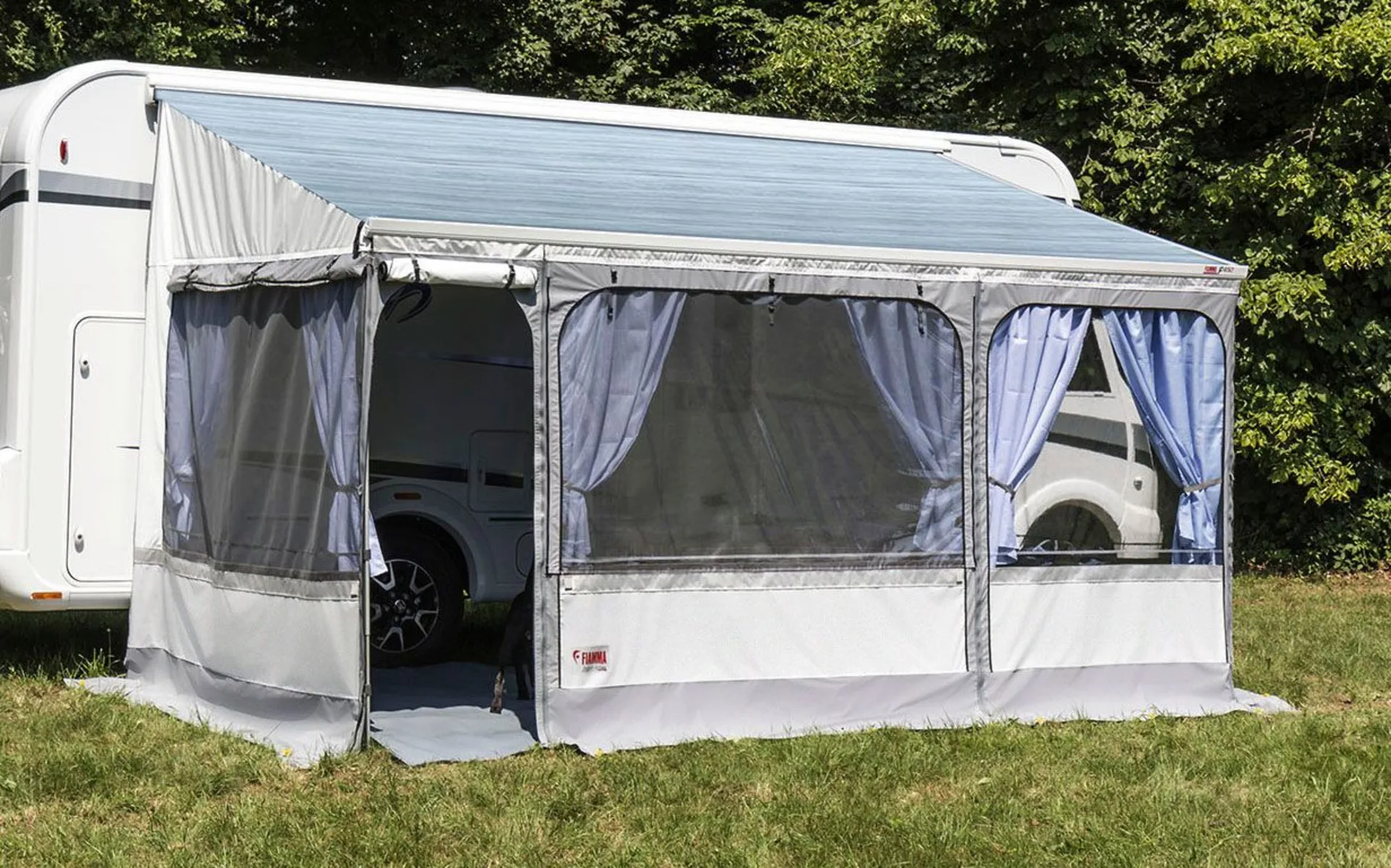 Für noch mehr Wohnraum. Fast-Clip für schnelle und einfache Anbringung. Alle Elemente mit Moskitonetz. Für die Markisenserien F45 und Thule 5003 (für F65 / F80 nur, wenn die Markise an einem Fiat Ducato, Mercedes Sprinter, VW Crafter (bis Bj. 2016) oder Wohnwagen angebracht ist. Material: 80 % Polylchlorid, 10 % Polyester, 10 % Glasfaser, wasserdicht, abwaschbar und UV-beständig.