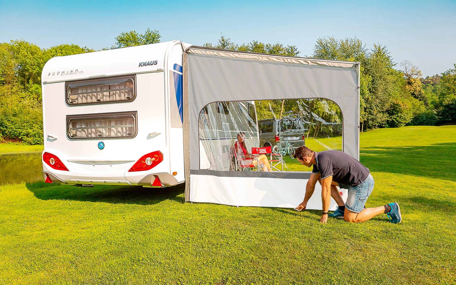 Tolle Erweiterung Ihrer Fiamma-Markise. Passend für die F35 Pro. Neues Design mit großem Fenster, neuen Farbtönen, abgerundeten Ecken und Bodenverlängerung. Sorgen Sie für Ihre persönliche Privatsphäre und schützen Sie sich gleichzeitig vor Sonne, Wind und Regen mit der hochwertigen Seitenwand Pro. Einfache Montage, durch die serienmäßig mitgelieferte, teleskopierbare Spannstange und Erdnägel. Anbauhöhe: 180-220 cm. Material: 90 % Polychlorid / 10 % Polyester.