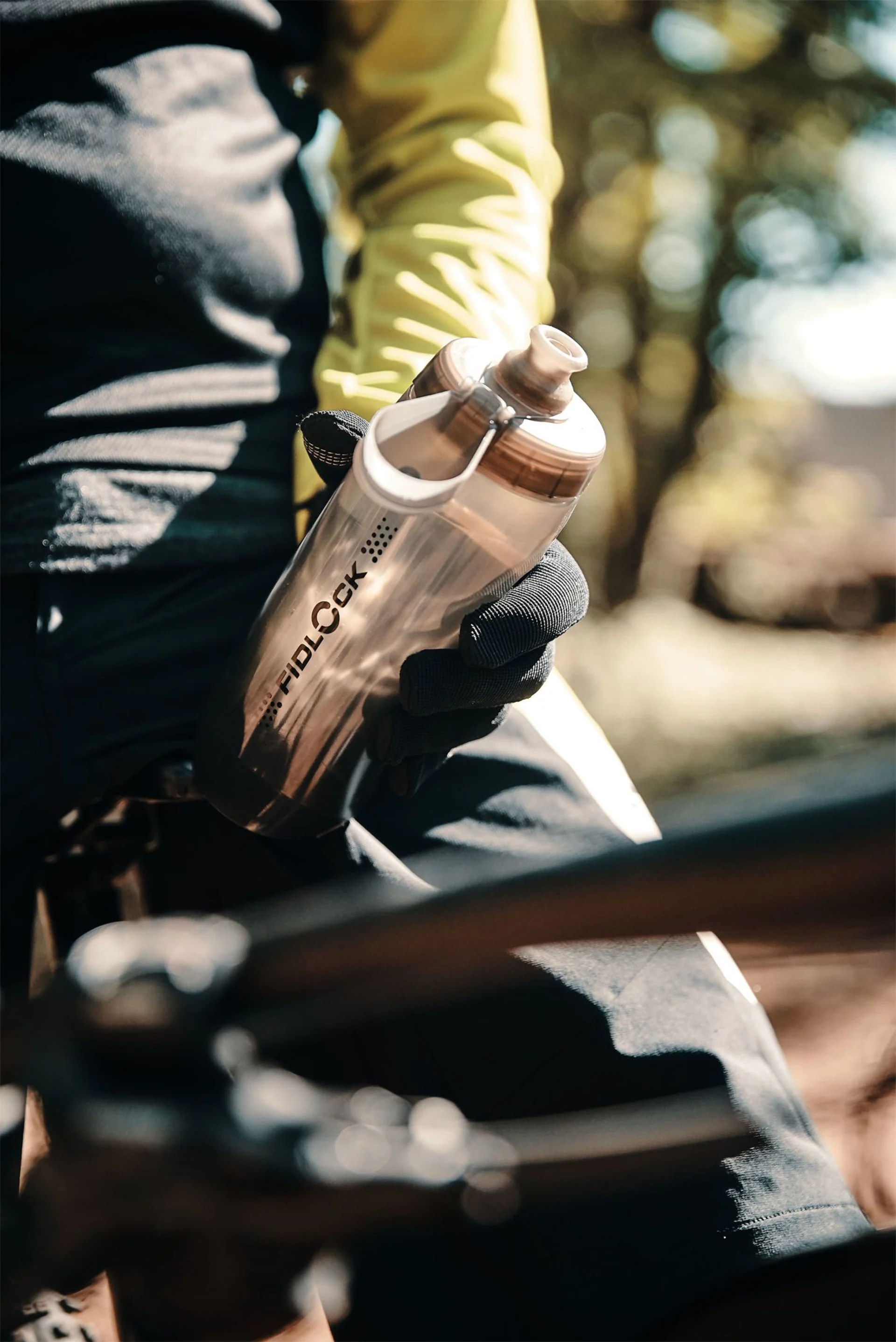 590 ml Trinkflasche inkl. magnet-mechanischem Flaschenhaltersystem für Fahrradrahmen.