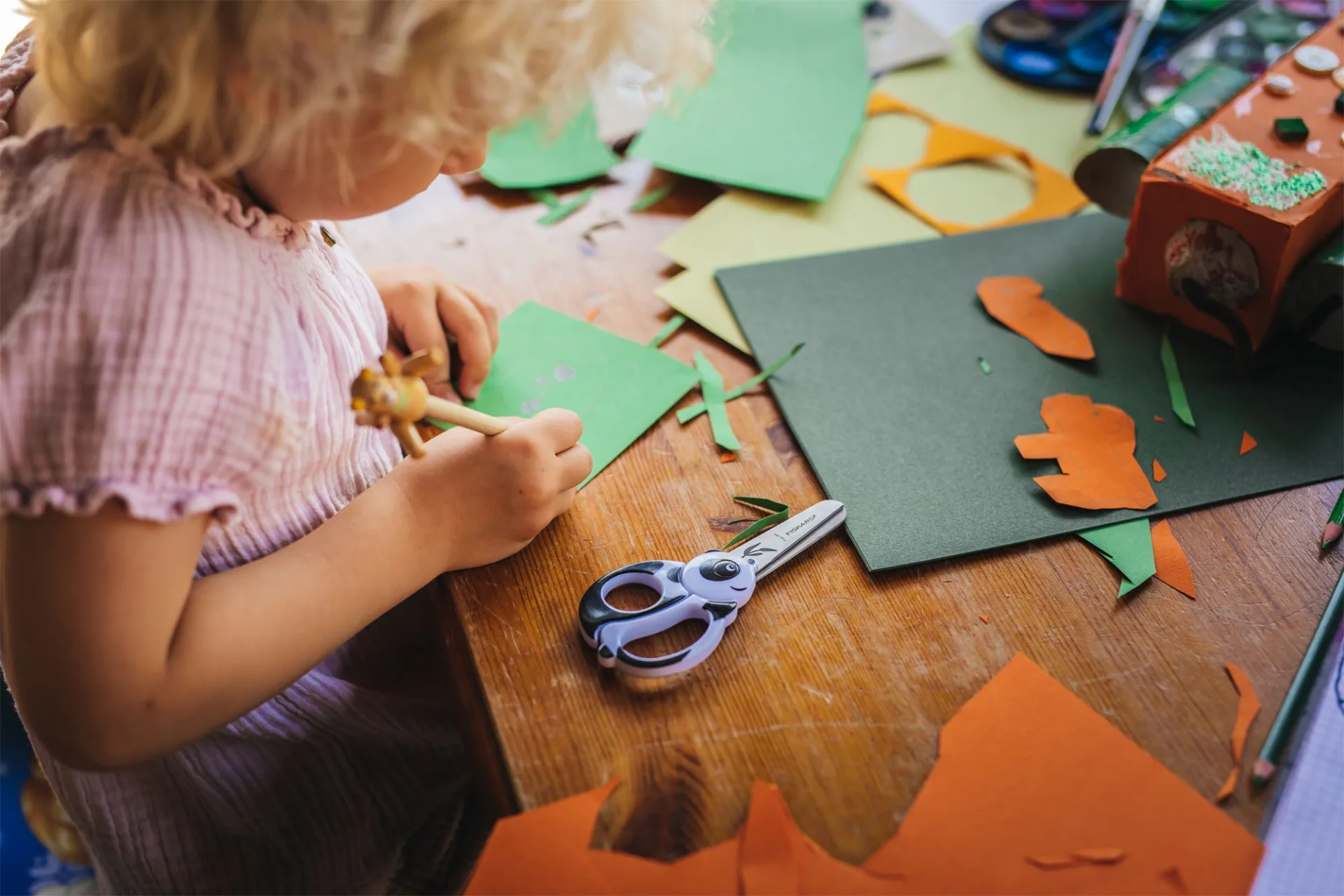 Jedes Kind ist ein kreatives Genie, und die einzige Grenze für seine Selbstentfaltung sollte seine eigene wilde Fantasie sein. Fiskars Tierscheren für Kinder sind speziell für kleine Hände und kreative Köpfe entwickelt worden. Die Klingen haben eine Sicherheitskante, eine stumpfe Spitze für zusätzliche Sicherheit und superlustige Details, die die Lieblingstiere der Kinder widerspiegeln.