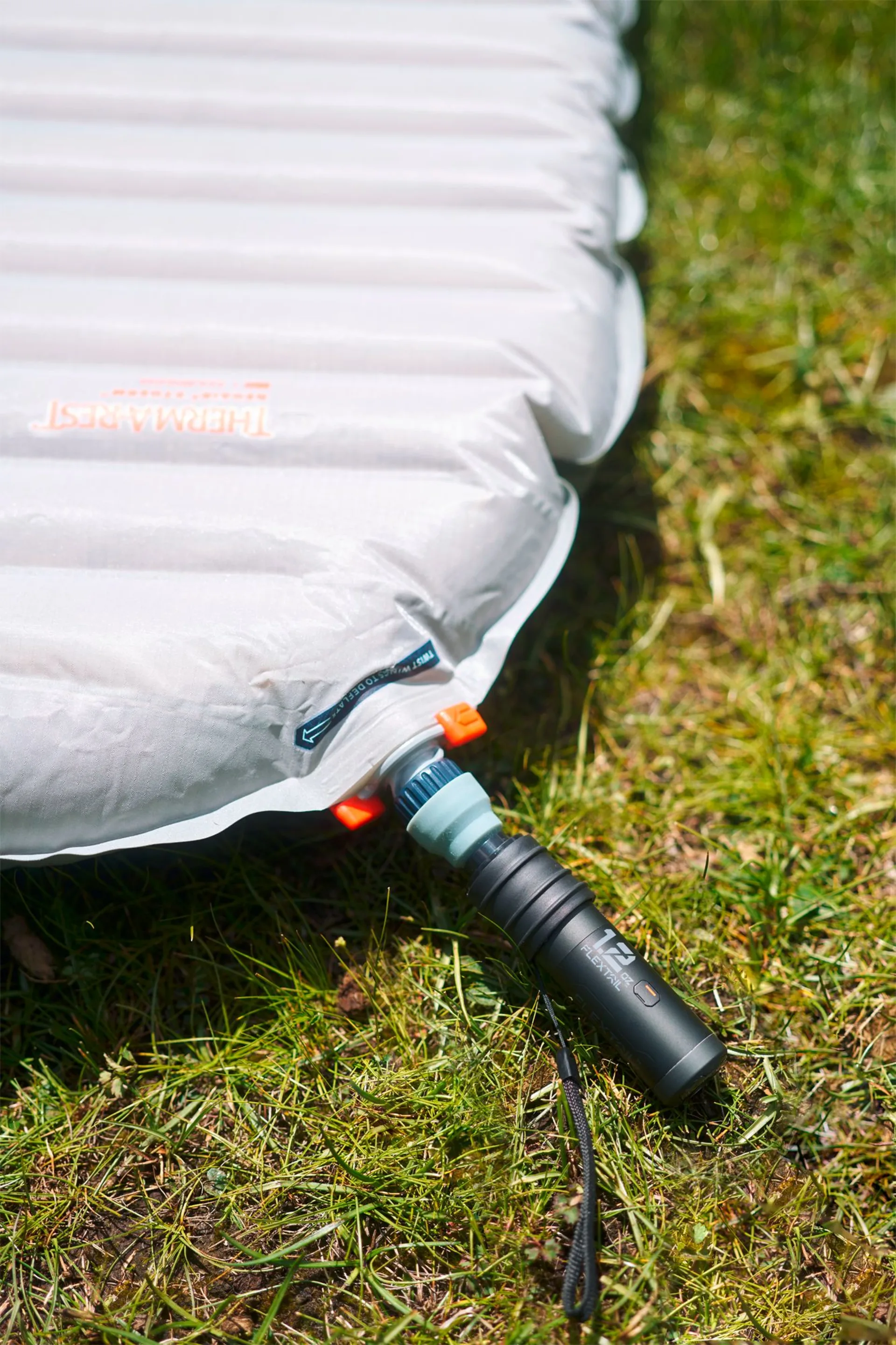 - Bläst Isomatten in 50 Sekunden auf und arbeitet bis zu 25 Mal hintereinander