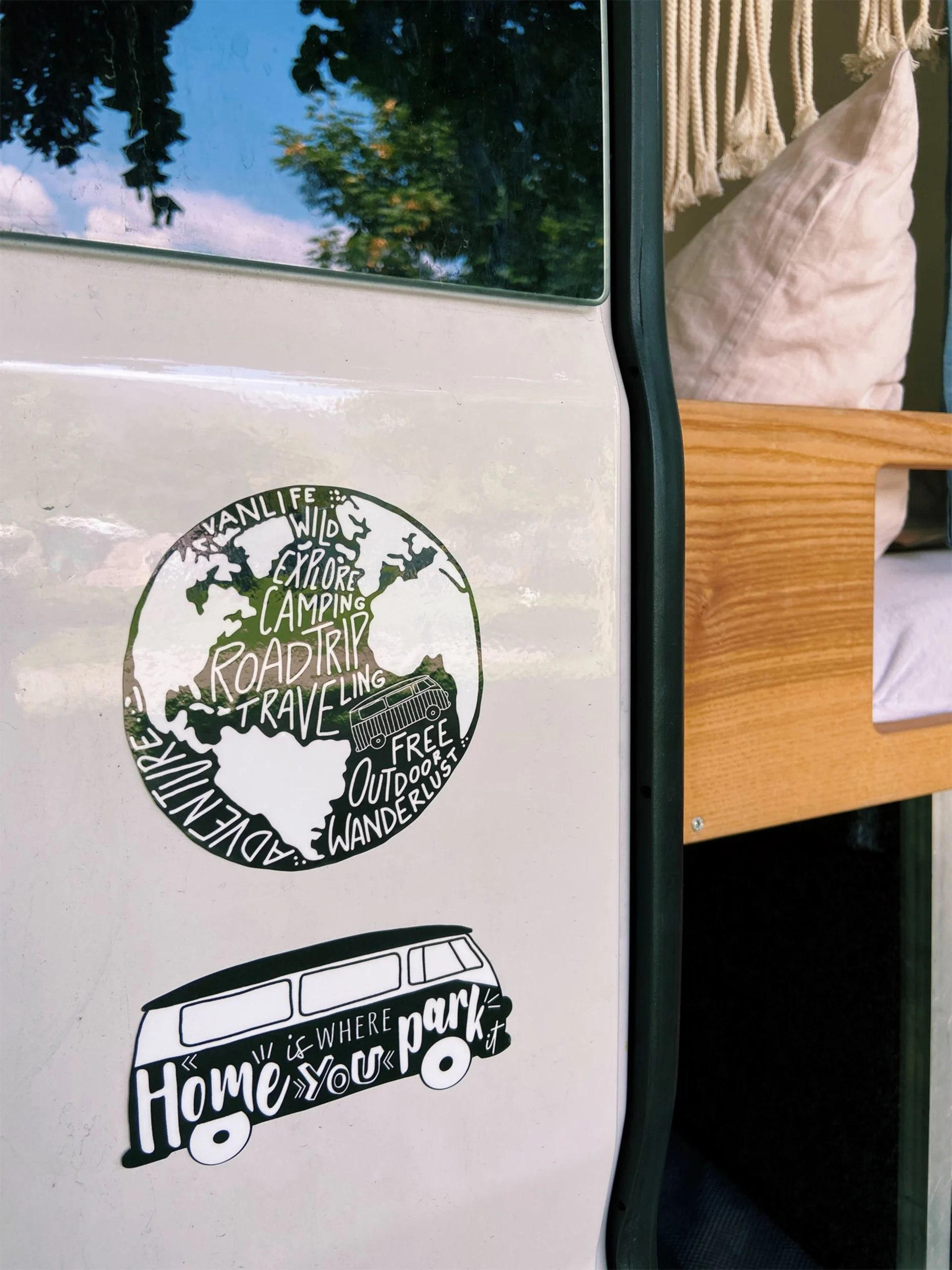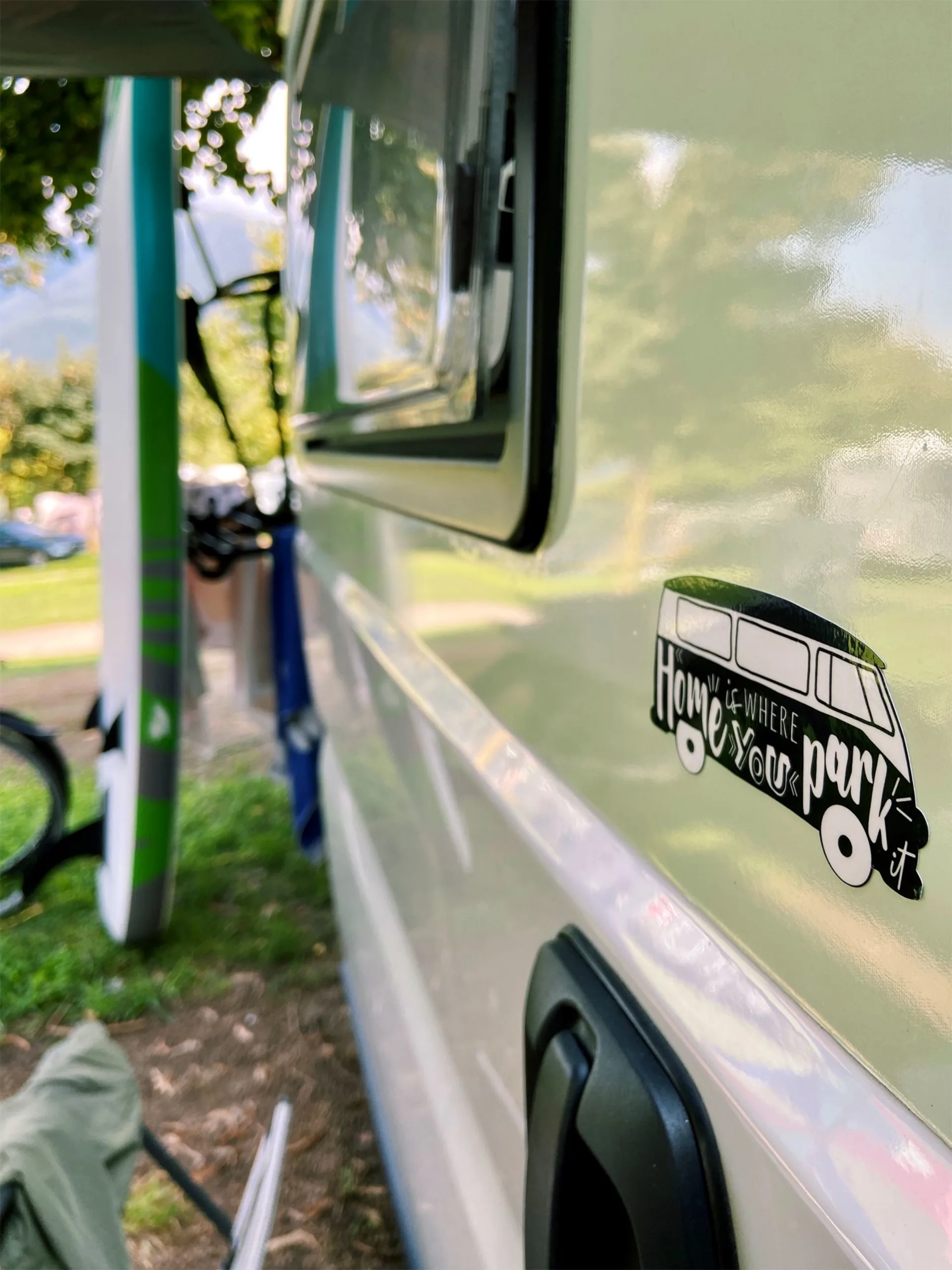 Eine Hommage an das rollende Zuhause auf 4 Rädern. Ideal um das Auto, den Bus, Camper oder sonstige Oberflächen im Freien zu verschönern. Der Aufkleber hat eine Größe von 11 x 5,3 cm. Die hochwertige Polymer Klebefolie ist für den Aussenbereich und jedem Fahrzeugtyp geeignet