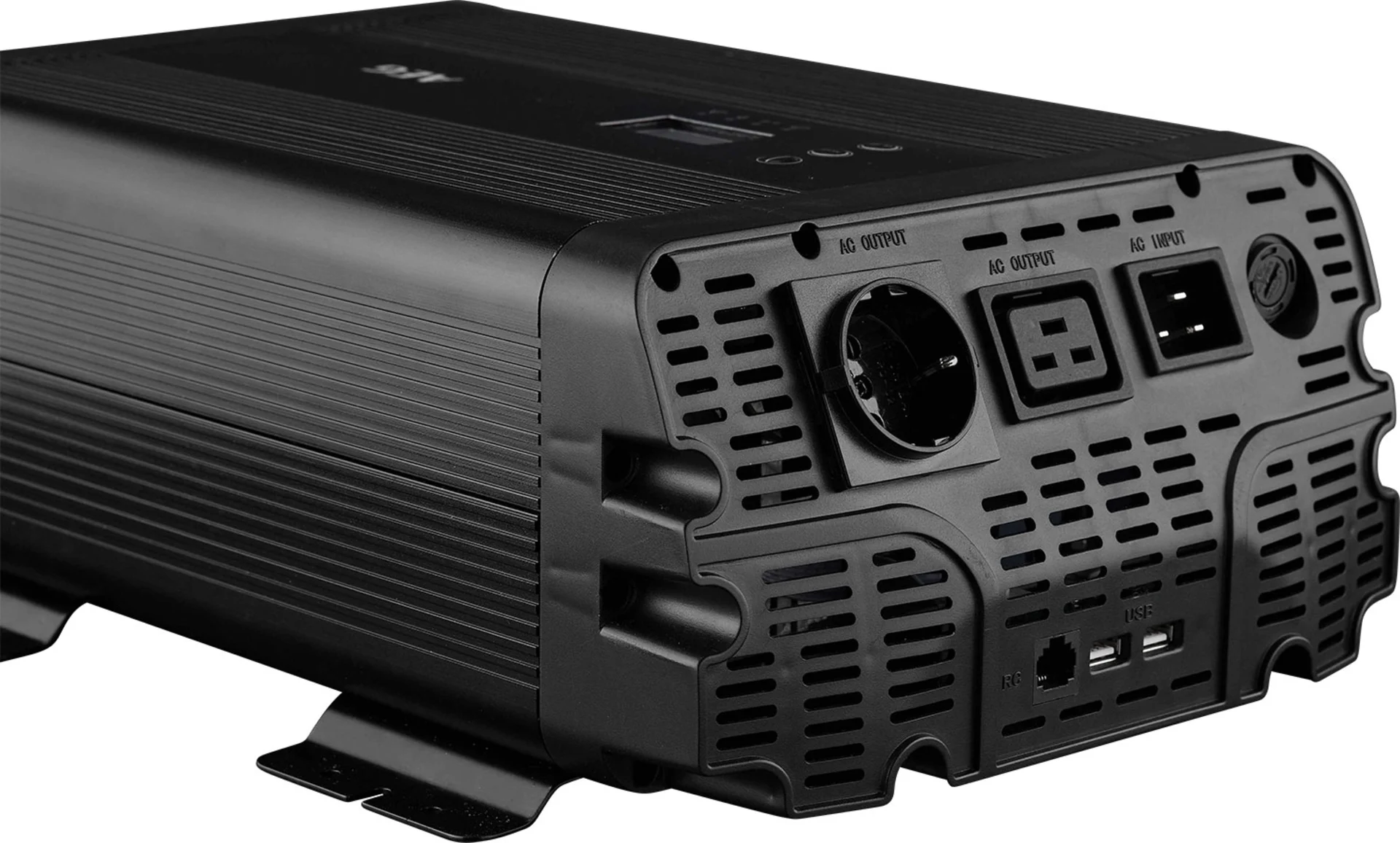 Le convertisseur de tension dispose d'un circuit de priorité de réseau (courant de quai DC/AC) lorsque tu connectes un câble d'alimentation sur un bateau ou un camping-car par exemple, ce qui permet de soulager la batterie.