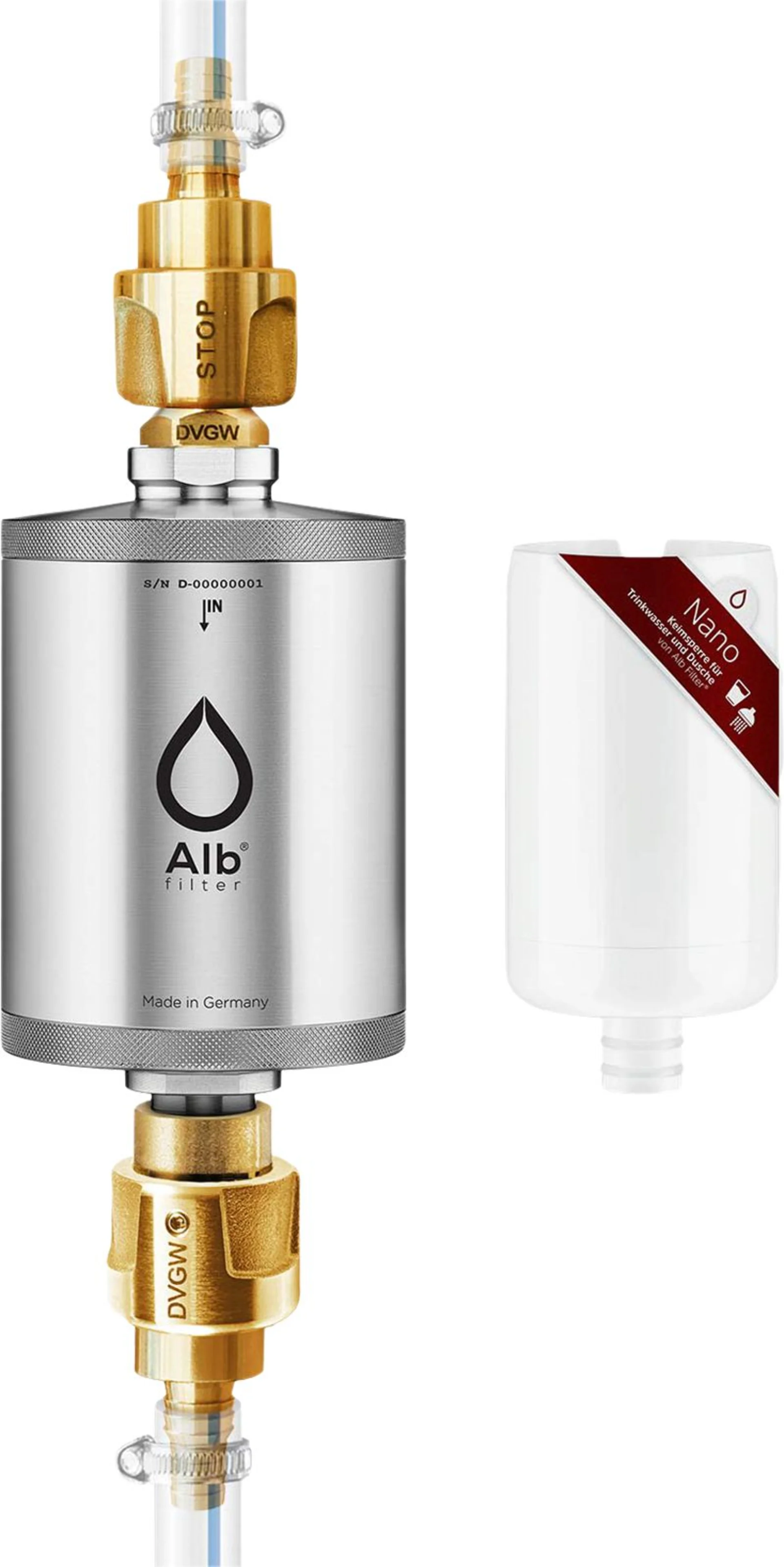 Alb Filter Nano Trinkwasserfilter mit Travel Anschluss-Set - Ausführung EDELSTAHL