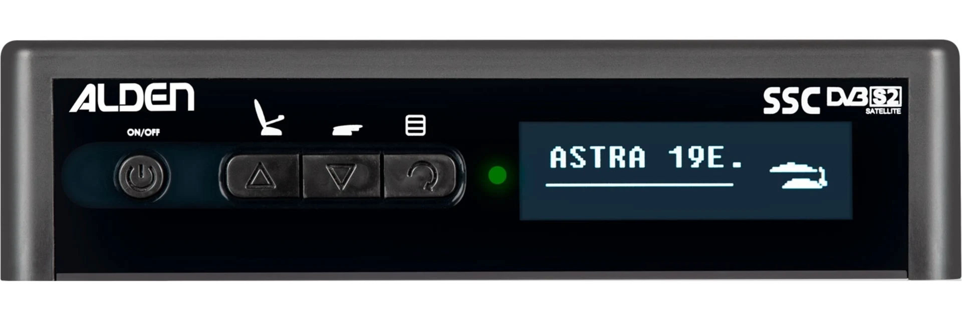 Le module de commande S.S.C. HD est entièrement intégré dans le récepteur HD. Le récepteur fait office de centrale de commande pour chaque antenne automatique ALDEN et assure le positionnement exact et rapide de l'unité extérieure. La transmission de l'image vers le téléviseur se fait numériquement via un câble HDMI ou analogiquement via un câble RCA. Un œil IR externe permet également une intégration cachée dans le véhicule. Le Satmatic HD est équipé d'un écran LED à 4 chiffres et supporte la norme DVB-S/S2. Il a jusqu'à 4000 emplacements de stockage de chaînes et dispose du télétexte et d'un guide électronique des programmes (EPG). Les autres caractéristiques sont un récepteur IR externe (œil IR), un PVR (enregistreur vidéo personnel) et la fonction timeshift (USB 2.0, disque dur 2,5" nécessaire). Il est possible de choisir l'allemand, le français et l'anglais comme langues de menu.