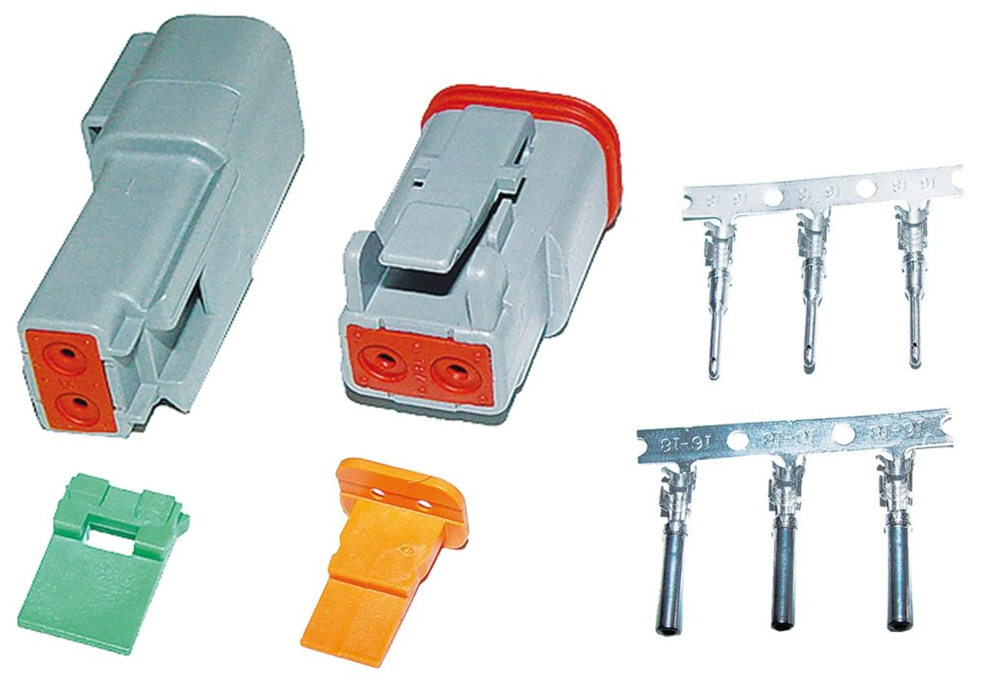 Jeu de fiches et de prises avec broches de contact et cales de maintien, 2 pôles - 1.5mm2 - 13 Amp.