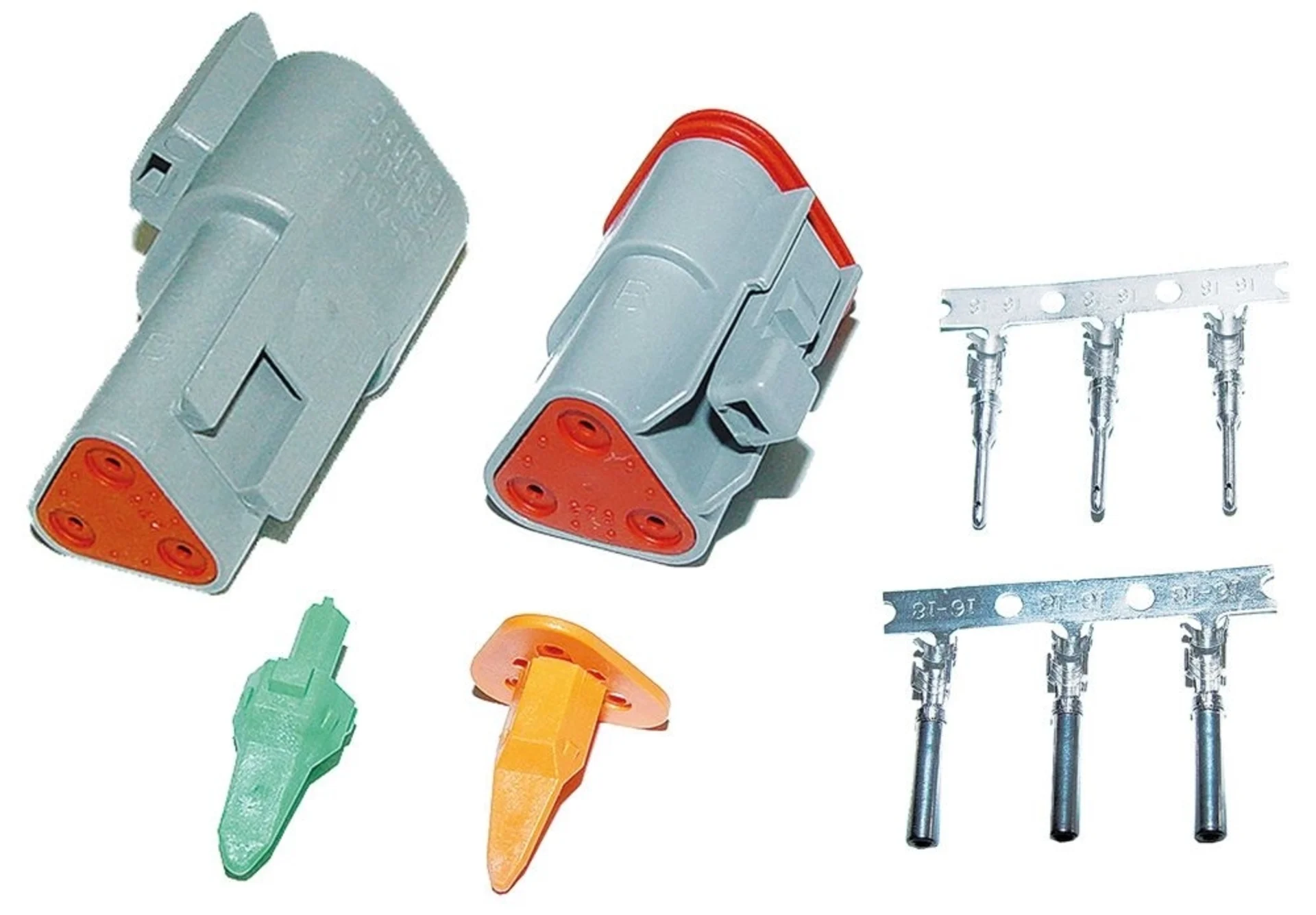 Jeu de fiches et de prises avec broches de contact et cales de maintien, 3 pôles - 1.5mm2 - 13 Amp.