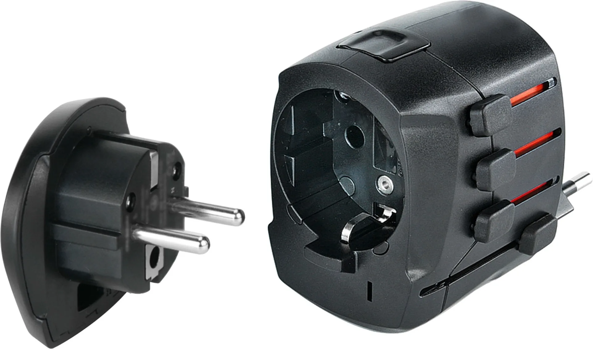 Adaptateur de voyage universel pour les appareils dotés d'une fiche à deux broches de classe de protection II (sans mise à la terre), tels que chargeur, rasoir, radio, lampe, etc. Le All in One 2 d'ANSMANN garantit que les appareils, quelle que soit la fiche secteur, peuvent être utilisés dans le monde entier. Le système ingénieux de curseur, un seul bouton de commande permet de sélectionner quatre prises nationales différentes. Les dimensions compactes et la facilité d'utilisation garantissent une connexion simple et sûre des appareils électriques à l'étranger. Il se glisse donc dans n'importe quelle valise.