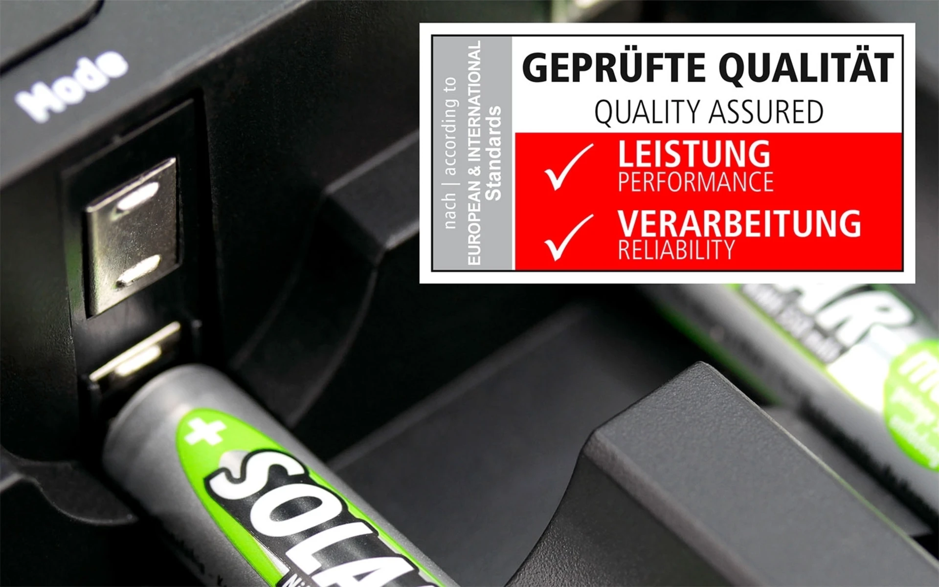 Les piles ANSMANN ont été testées avec succès sur les exigences électriques, thermiques, géométriques et mécaniques. Grâce à des tests rigoureux en Allemagne et en Extrême-Orient, nous pouvons garantir la meilleure qualité de produit. Nos experts en qualité contrôlent régulièrement le respect de nos exigences élevées ainsi que des normes internationales.