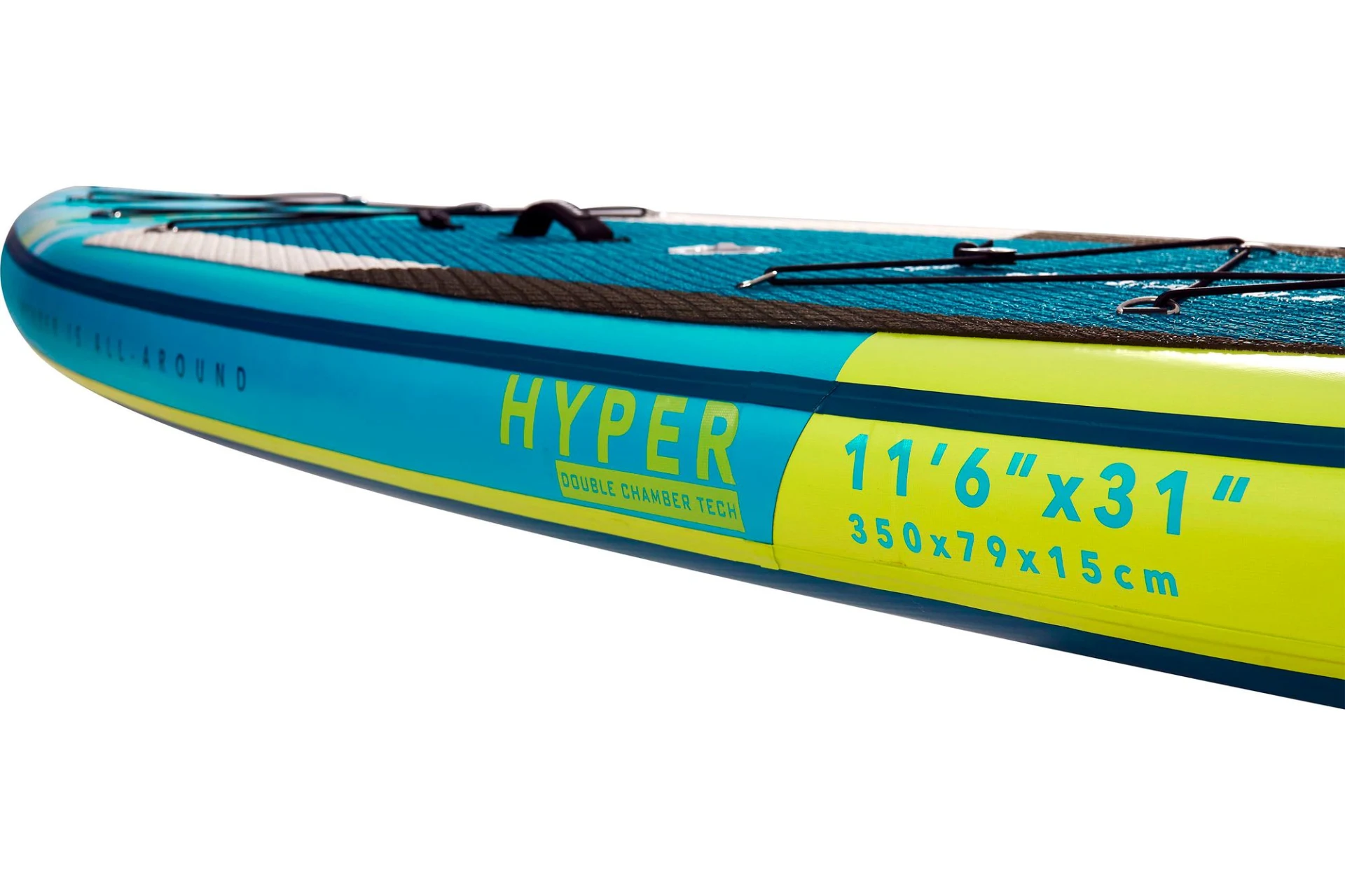 Die unübertroffene Steifigkeit und Stabilität, die durch die neue Doppelkammerkonstruktion zustande kommt, macht Hyper ideal für den Transport von Campingausrüstung, während seine stromlinienförmige Form perfekt für Hochgeschwindigkeitsfahrten geeignet ist und es Ihnen ermöglicht, weiter und länger zu paddeln. Das aufblasbare Hyper Touring Board wird das Lieblingsfahrzeug aller Entdecker sein.