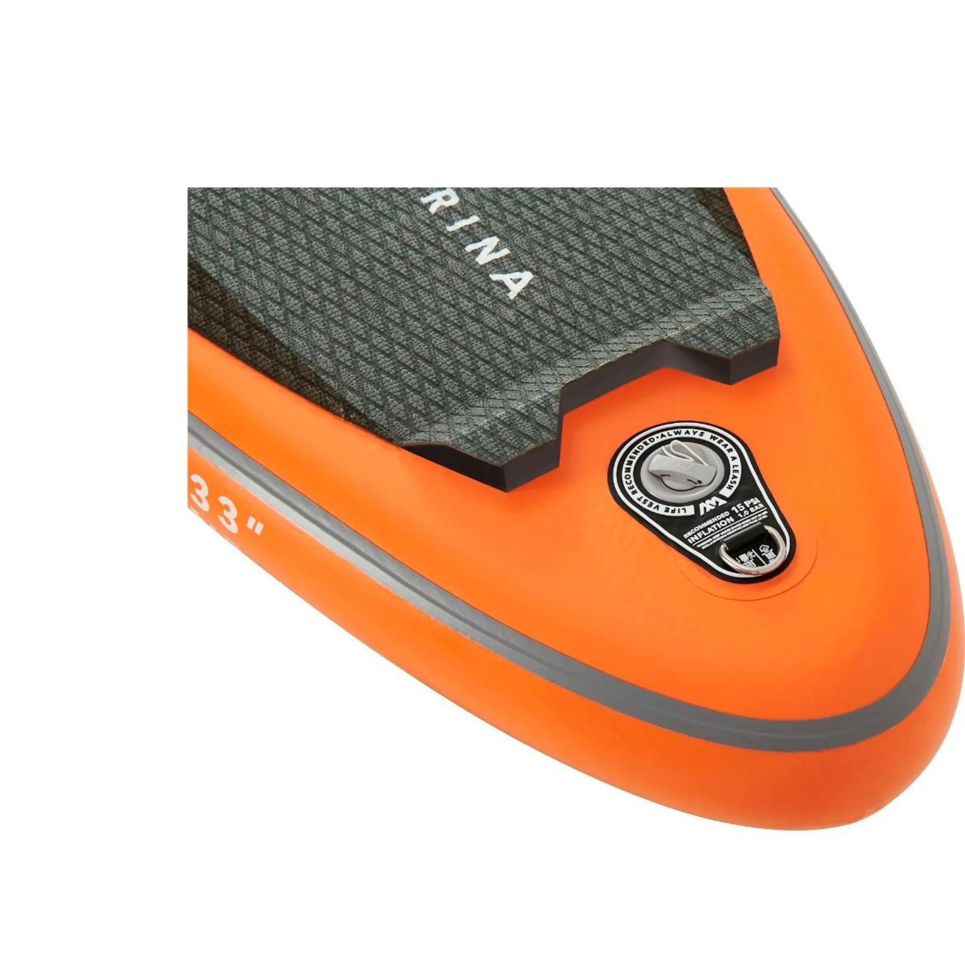- Zusätzliche D-Ringe aus Edelstahl auf dem Deckpad für optionales Anbringen eines AM SUP Sitzes