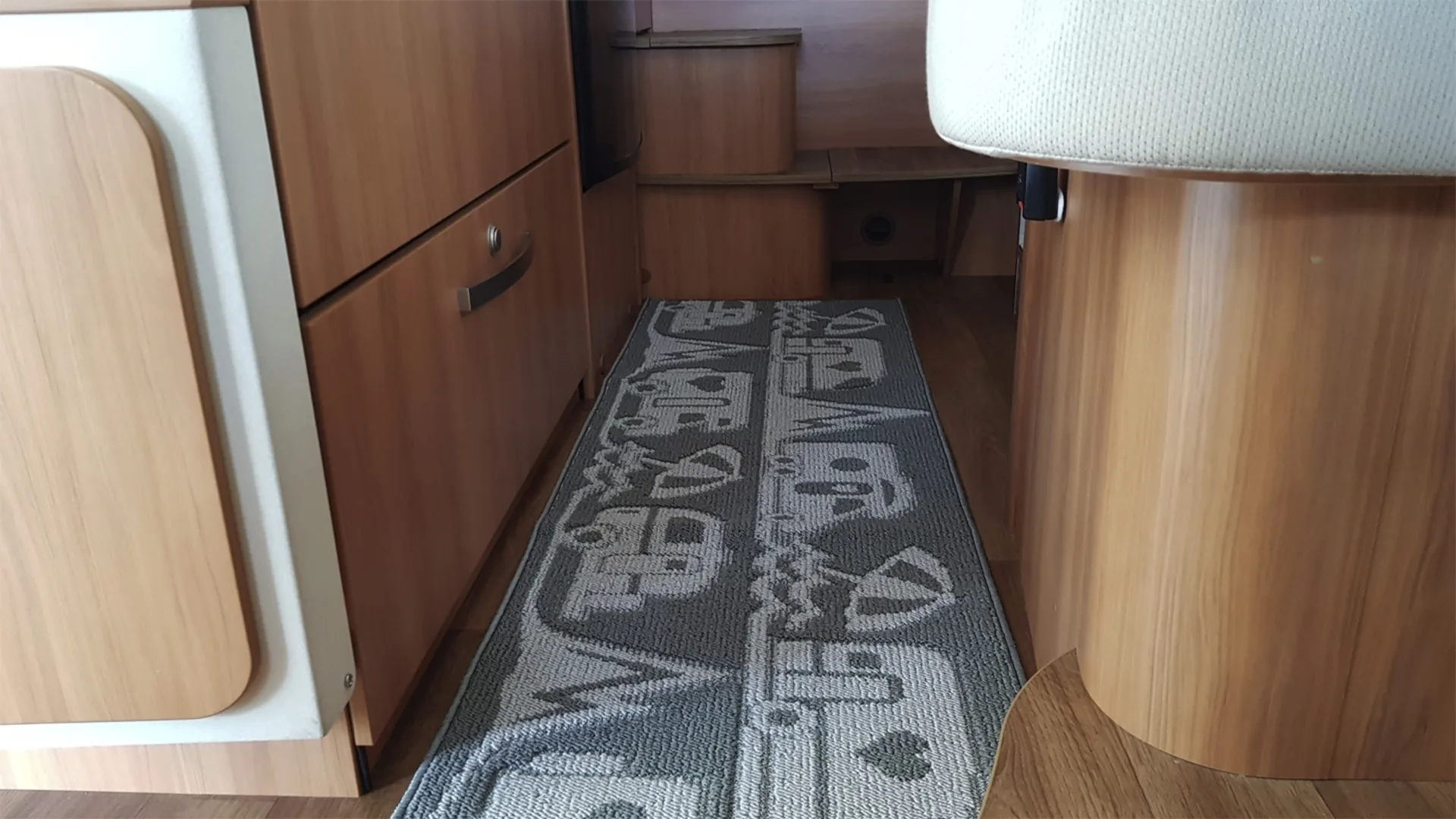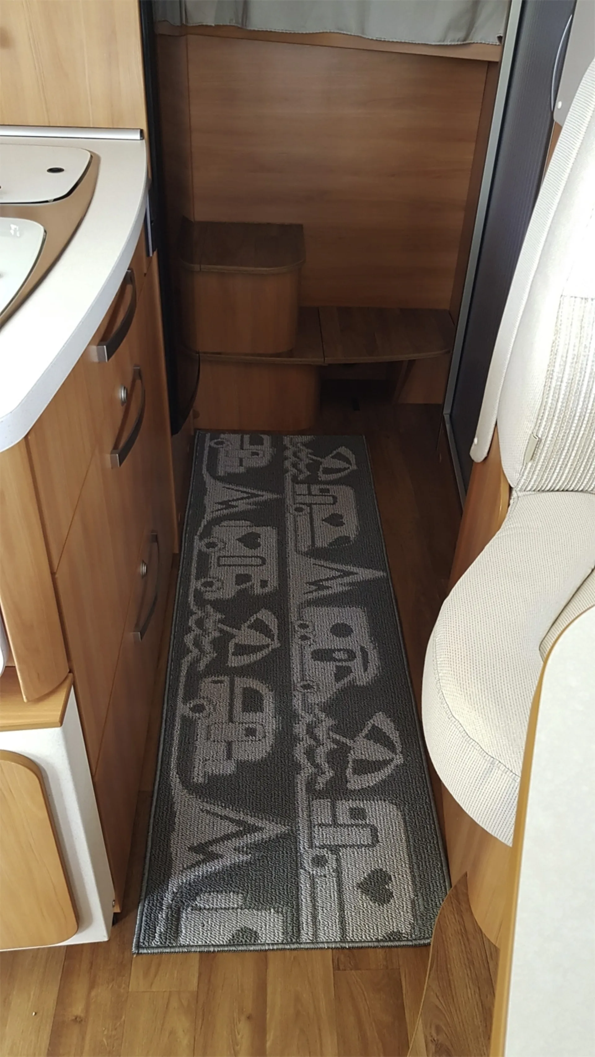 Tapis de sol pratique et doux pour la caravane, le camping-car et l'intérieur du camping. Il est disponible en deux couleurs et trois tailles différentes pour chacune ! Lavable à 30° C.