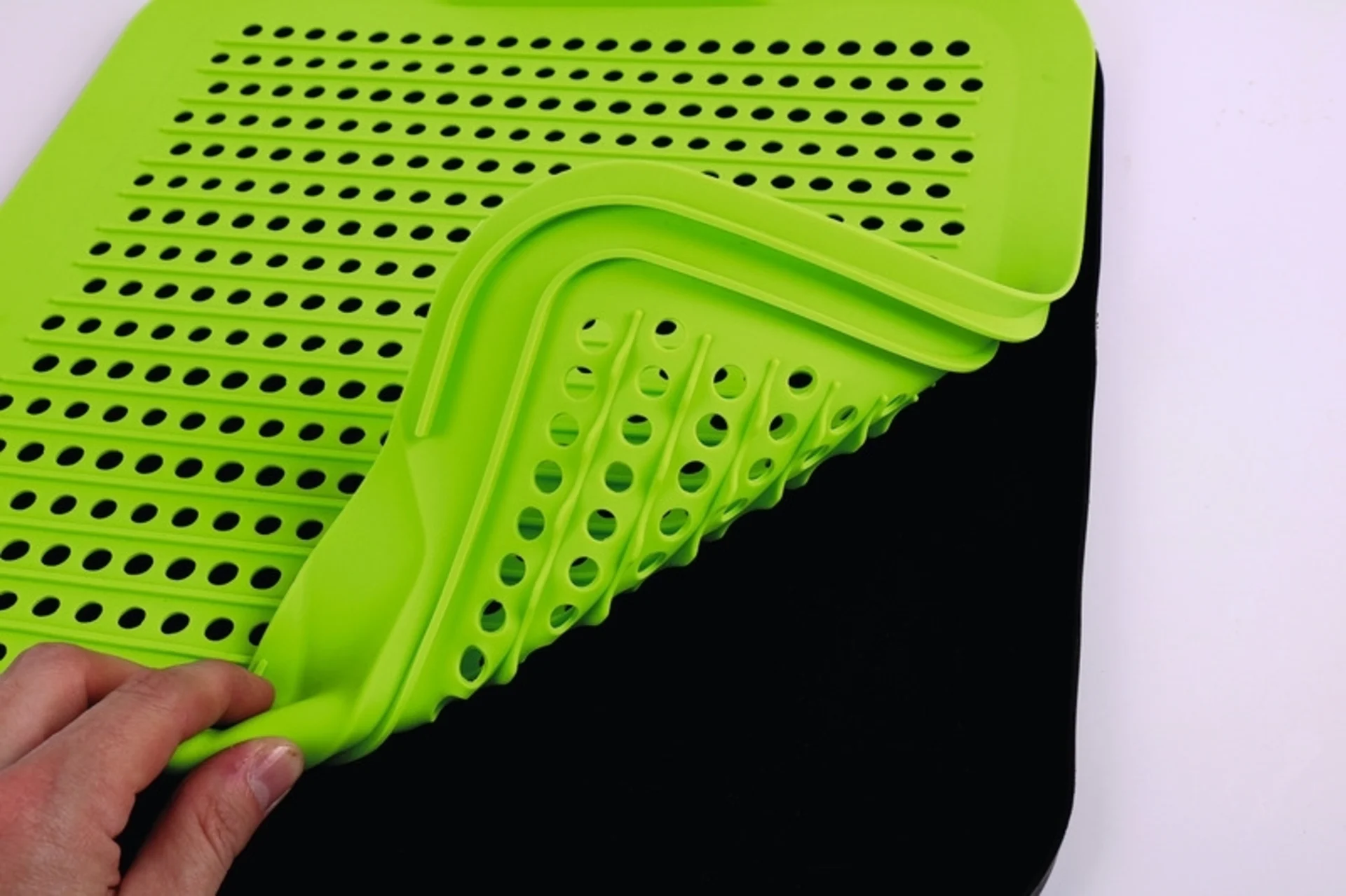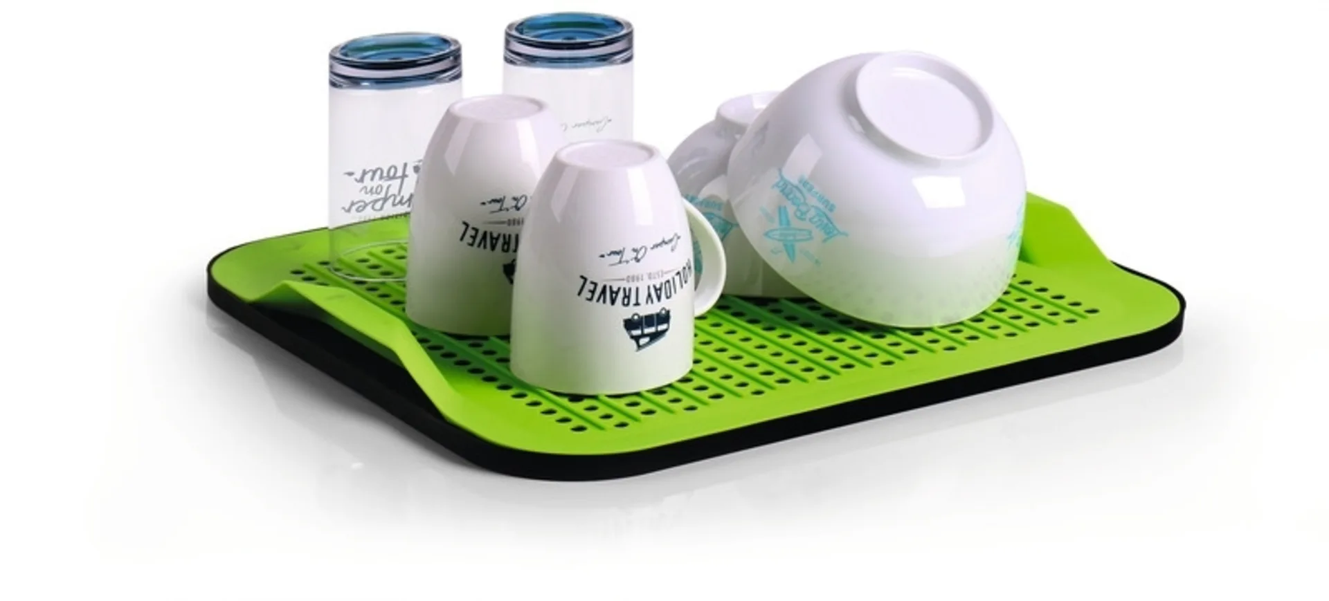 Le tapis à vaisselle en silicone peut être rangé à plat ou enroulé, ce qui le rend très compact. Composé de deux parties : le tapis supérieur avec des trous d'égouttage permet de ne pas laisser ta vaisselle dans une flaque d'eau, le tapis inférieur recueille l'eau pour un espace de travail propre. Dans la combinaison de couleurs vert citron/noir, assorti à de nombreux autres produits ménagers Camp4.