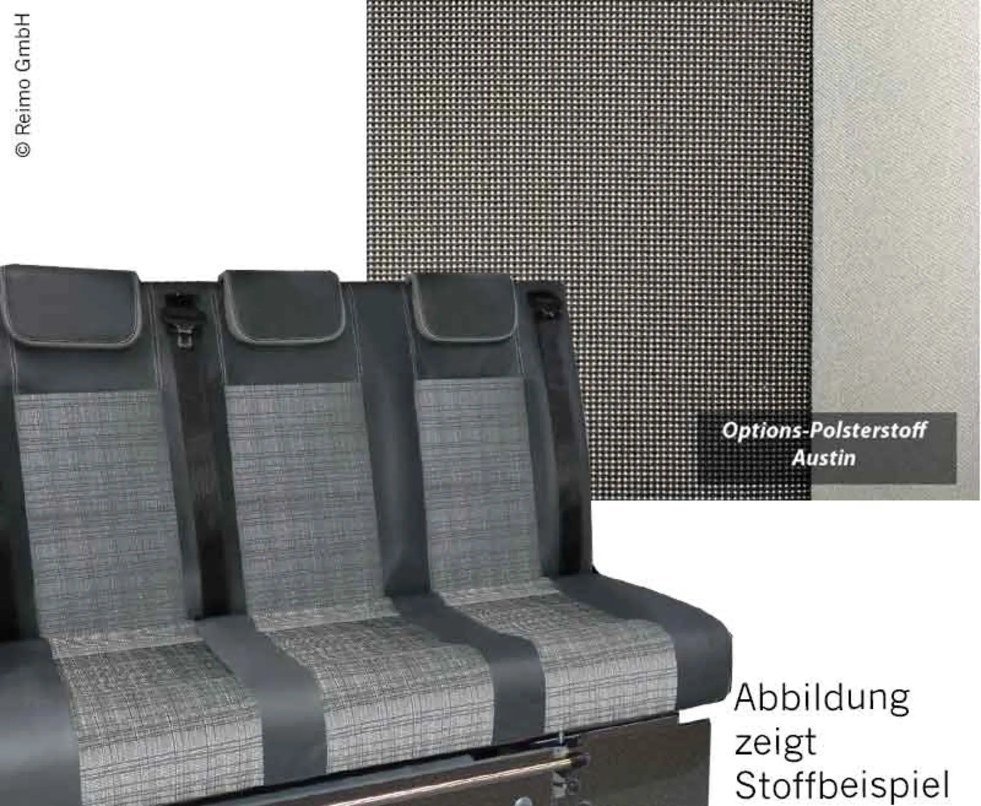 banquette-lit 3 personnes VW T5 Trio Style V3000 taille 10 déplaçable et amovible, distance entre les rails 651 mm. Banquette-lit avec support Isofix pour 2 sièges enfants.